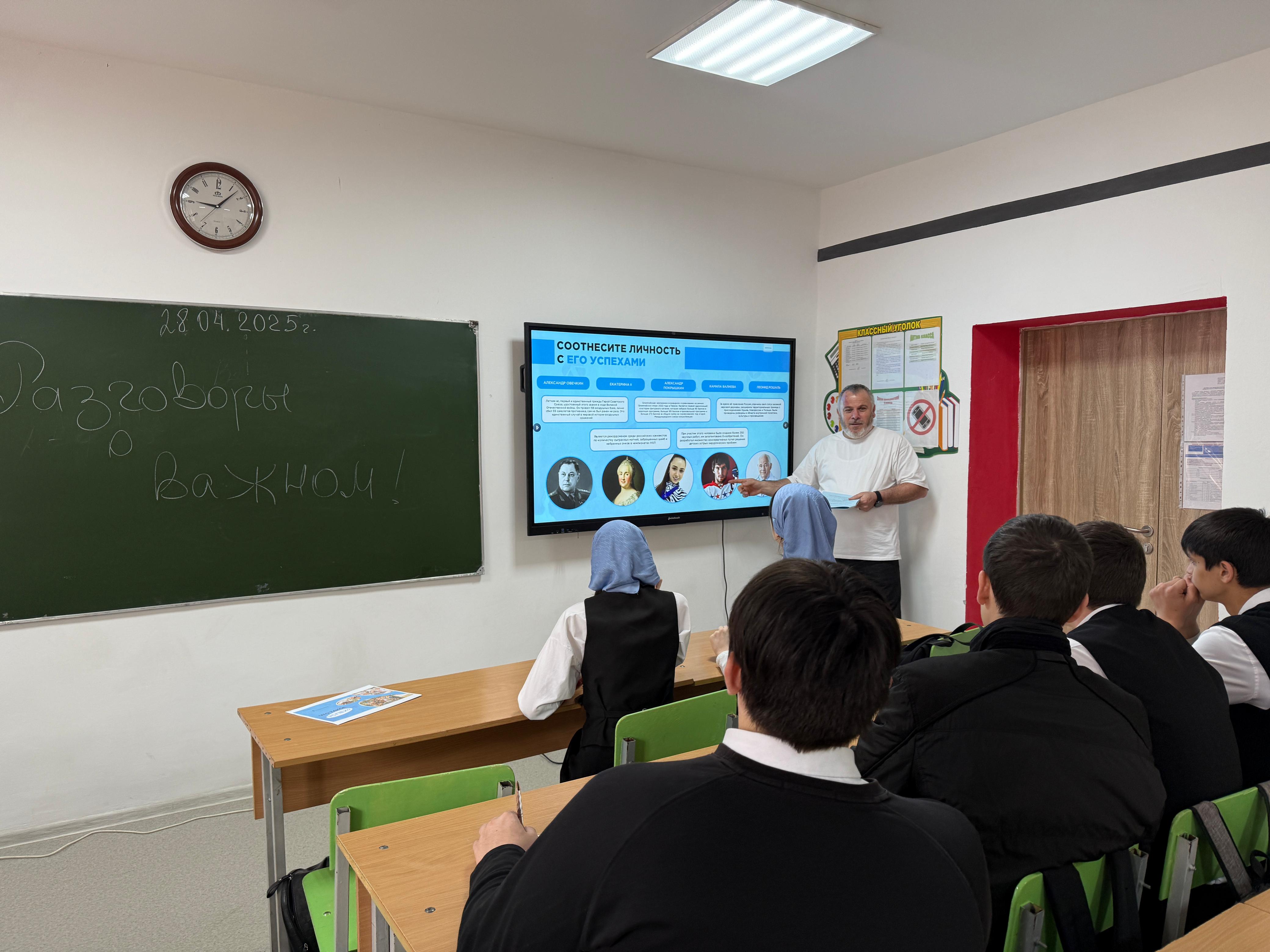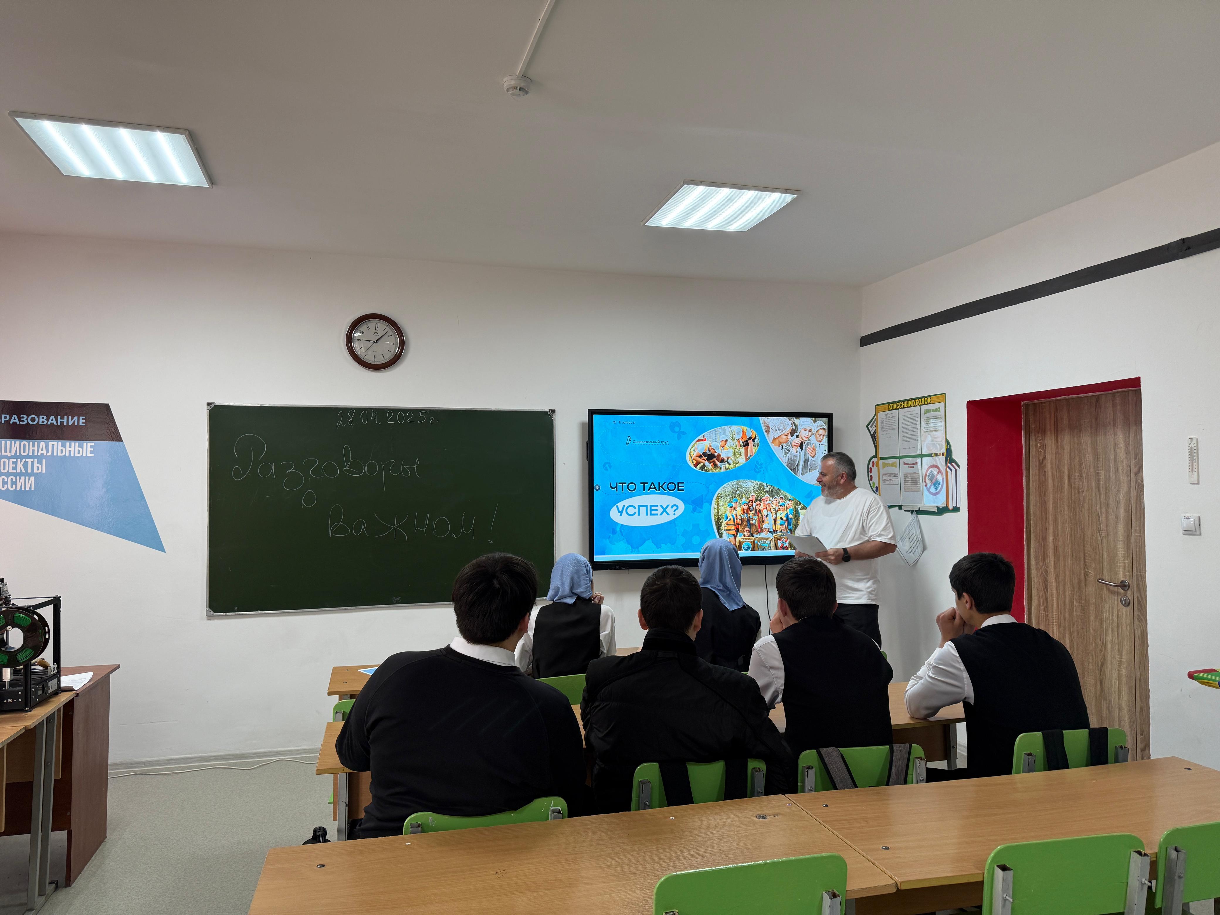 28.04.2025г в МБОУ «Веденская СОШ №2», состоялся очередной урок из цикла «Разговоры о важном». Беседа прошла в преддверии Праздника Весны и Труда, который отмечается в нашей стране 1 мая. На занятии поговорили о том, как достичь успеха в жизни, и какую роль играют в этом труд и образование. Тема нового урока — «Что такое успех?». Его основной целью обозначено формирование представлений о ценности созидательного труда и необходимости развивать свой трудовой и творческий потенциал, что важно как для достижения личного успеха, так и благополучия всего государства.