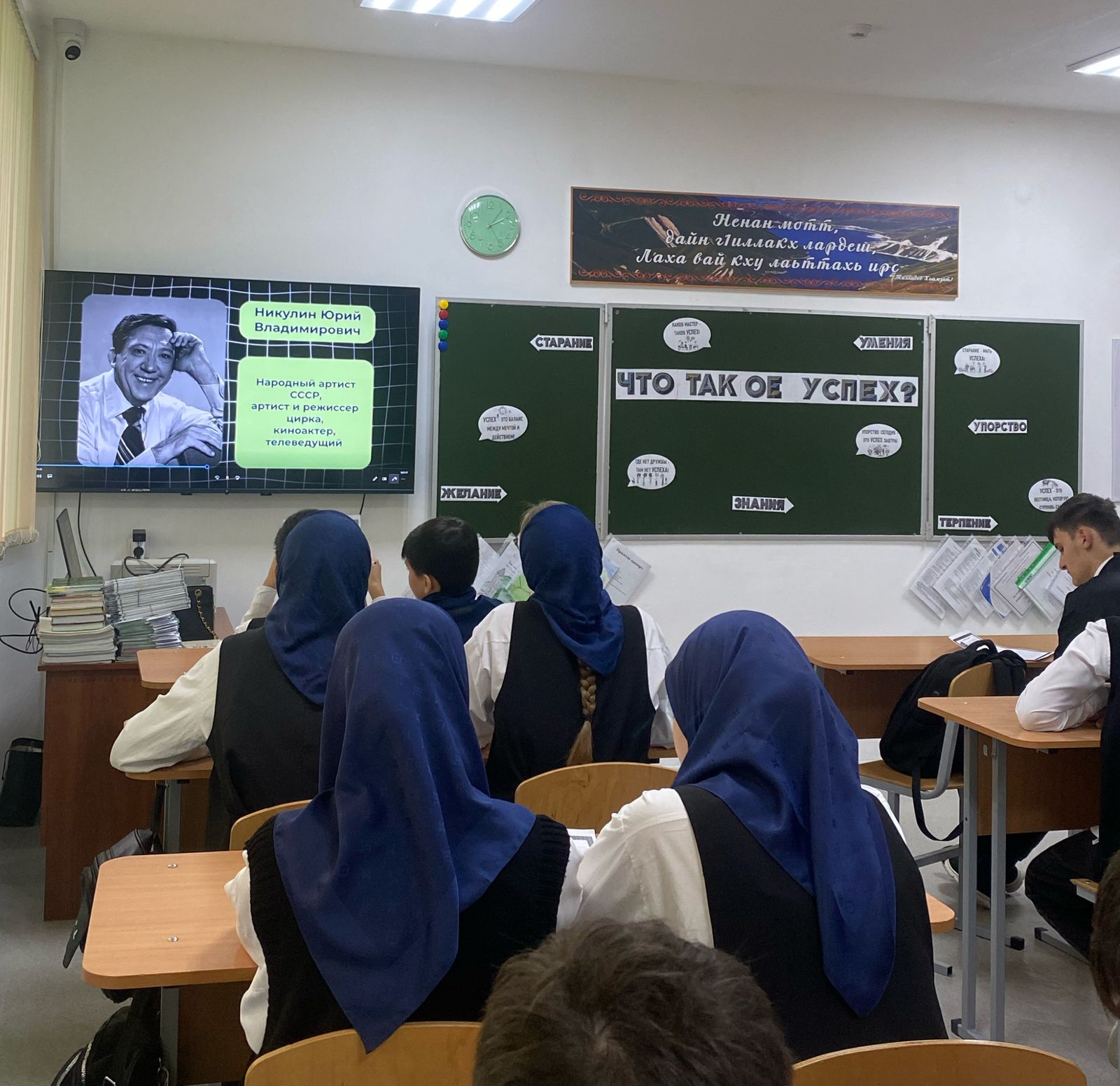 В восьмых-одиннадцатых классах обсудили, какие качества помогают человеку стать успешным, как правильно ставить цели и что нужно делать, чтобы каждый маленький успех становился кирпичиком в строительстве большого успеха. В дополнение ребята посмотрели видеоролик о молодых профессионалах, которые уже добились серьезных успехов в жизни.