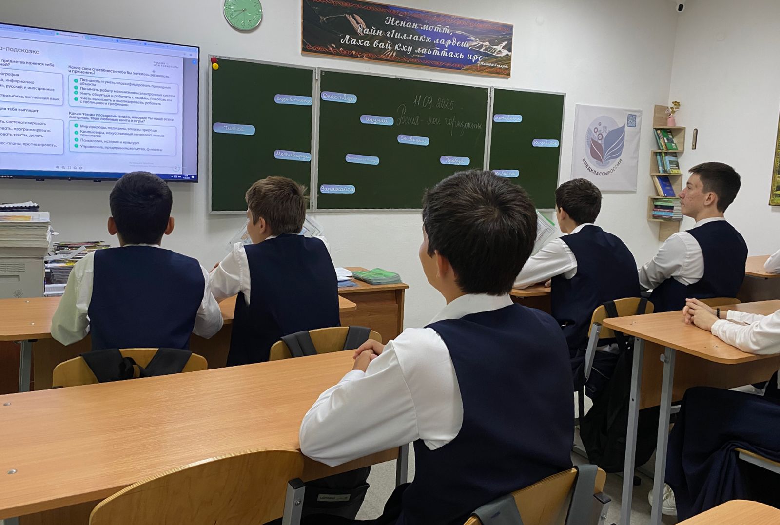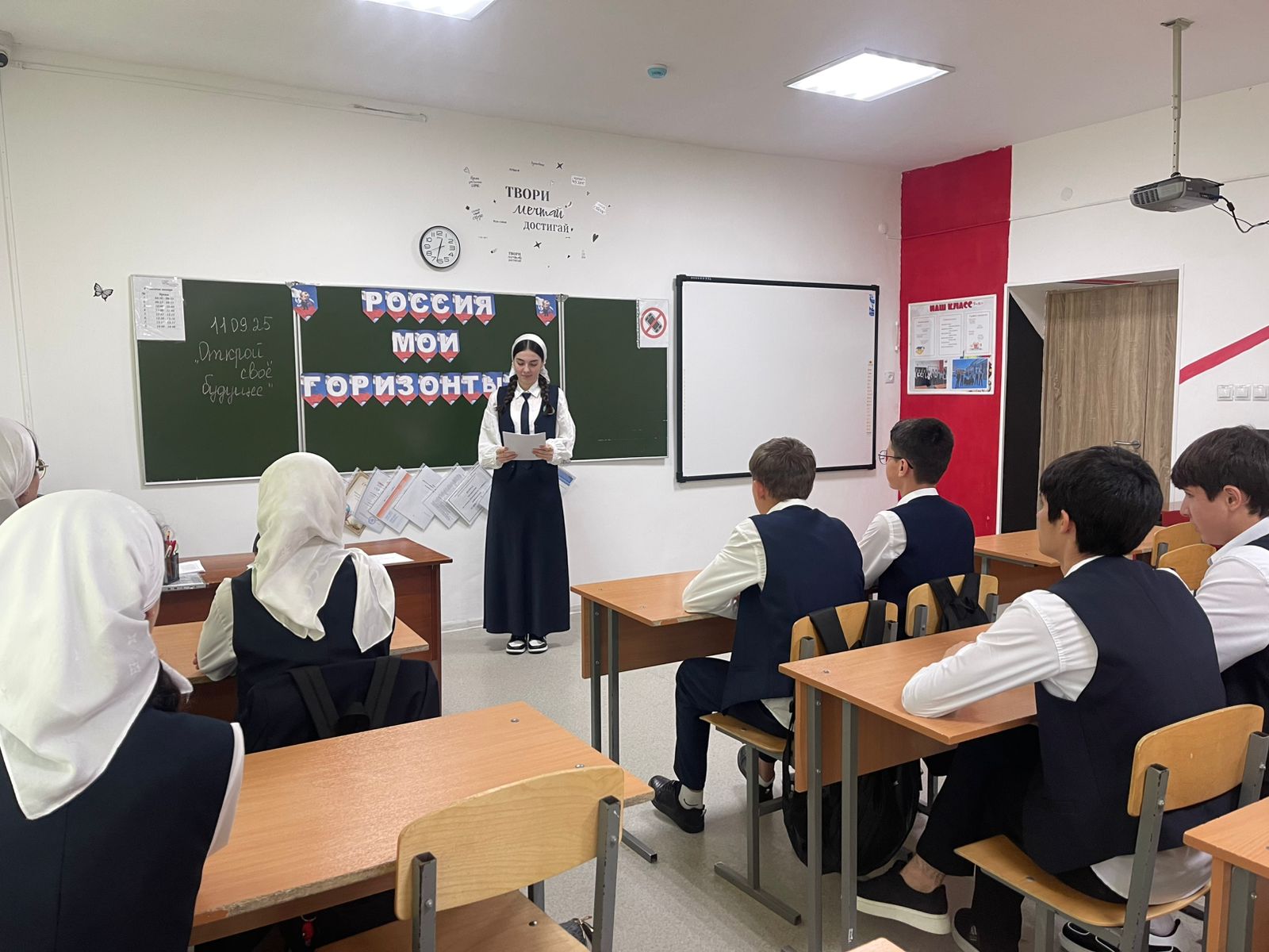 Сегодня, 11 сентября 2025 года, в нашей школе прошло внеурочное занятие на тему «Открой своё будущее» в рамках проекта «Россия — мои горизонты». Занятие было посвящено помощи учащимся 6–11 классов в выборе профессионального пути.