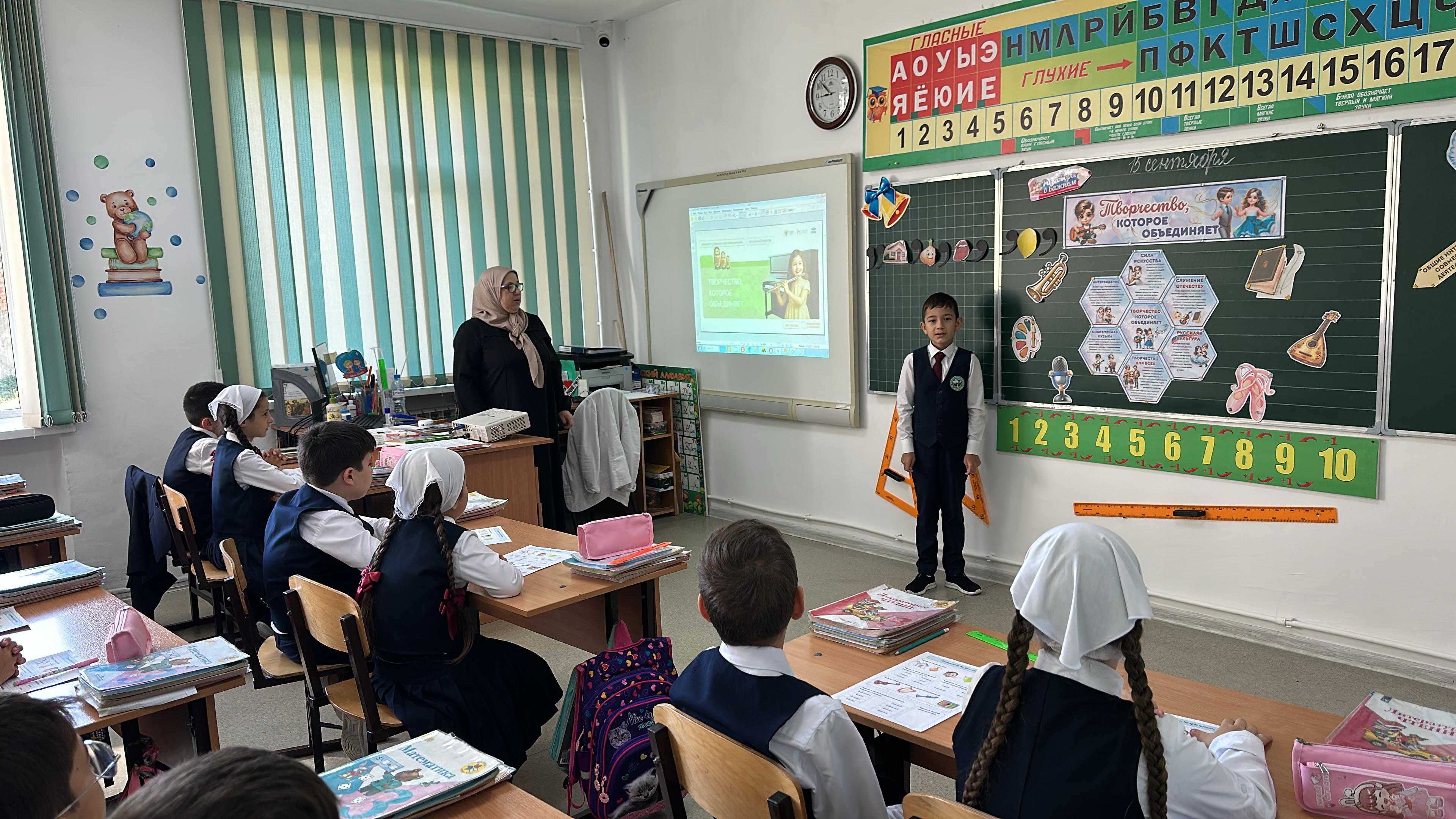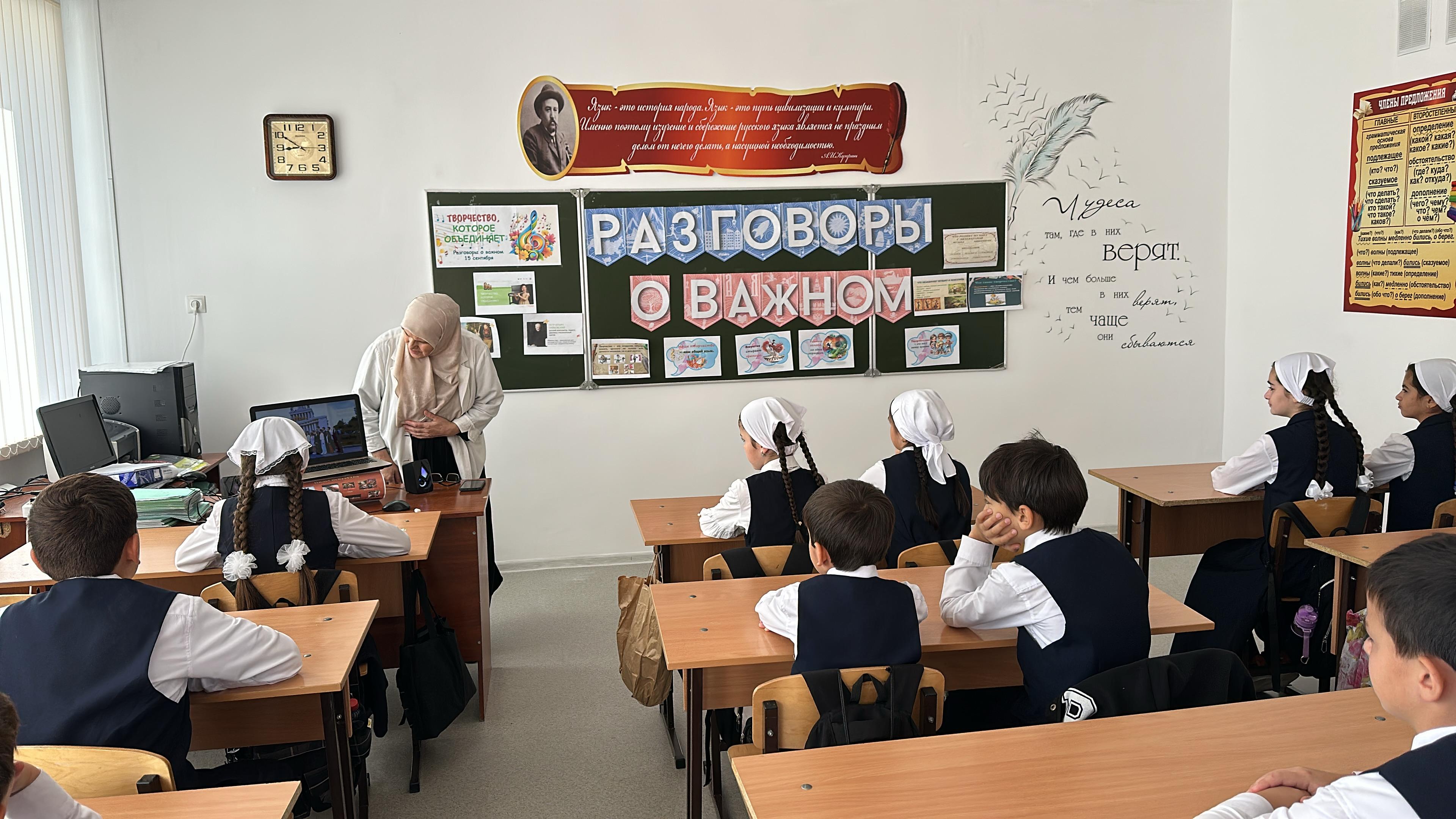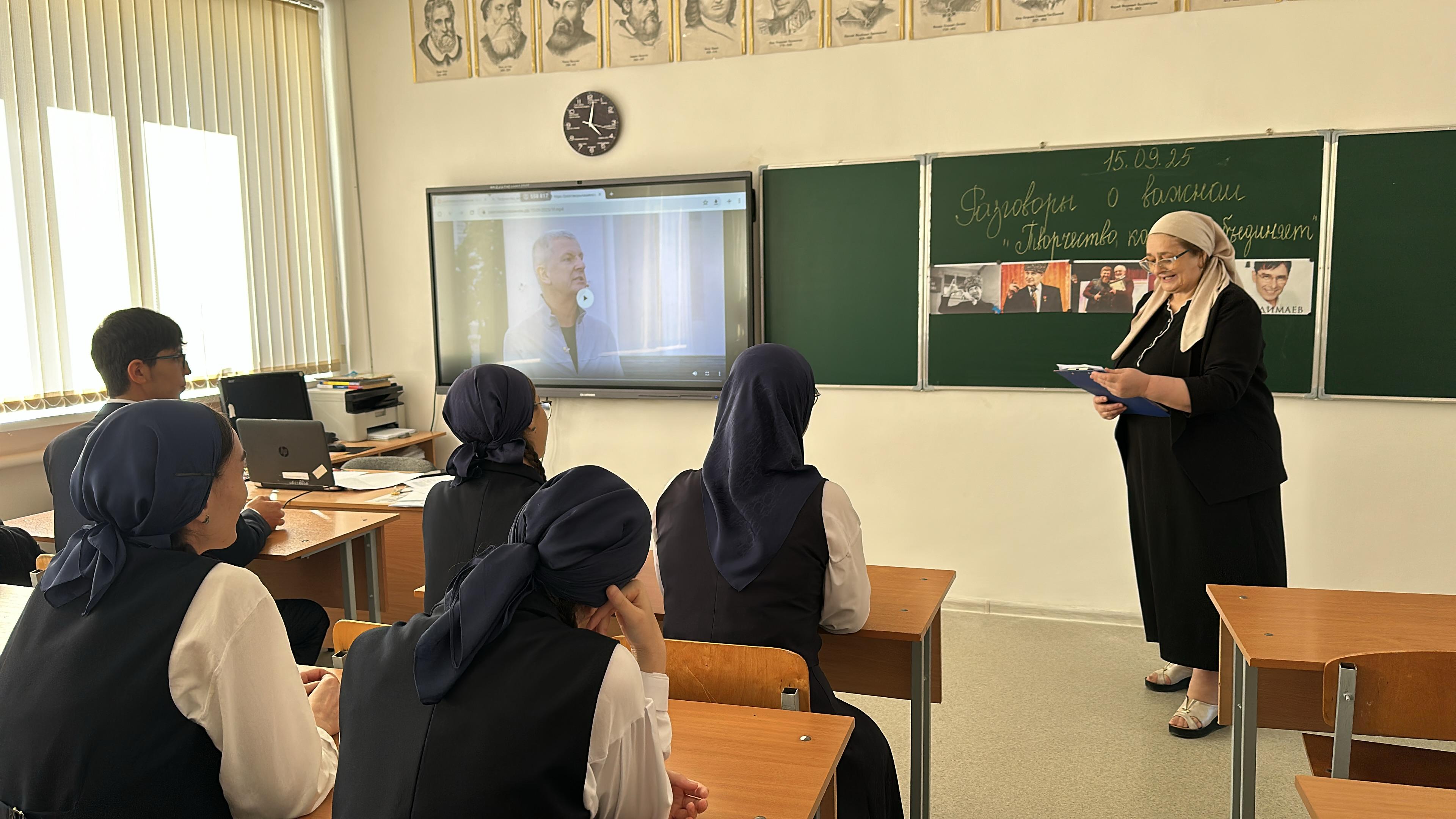 15 сентября 2025 года в МБОУ Веденская СОШ №2 прошли традиционные внеурочные занятия «Разговоры о важном». Тема недели была посвящена силе искусства «Творчество, которое объединяет».