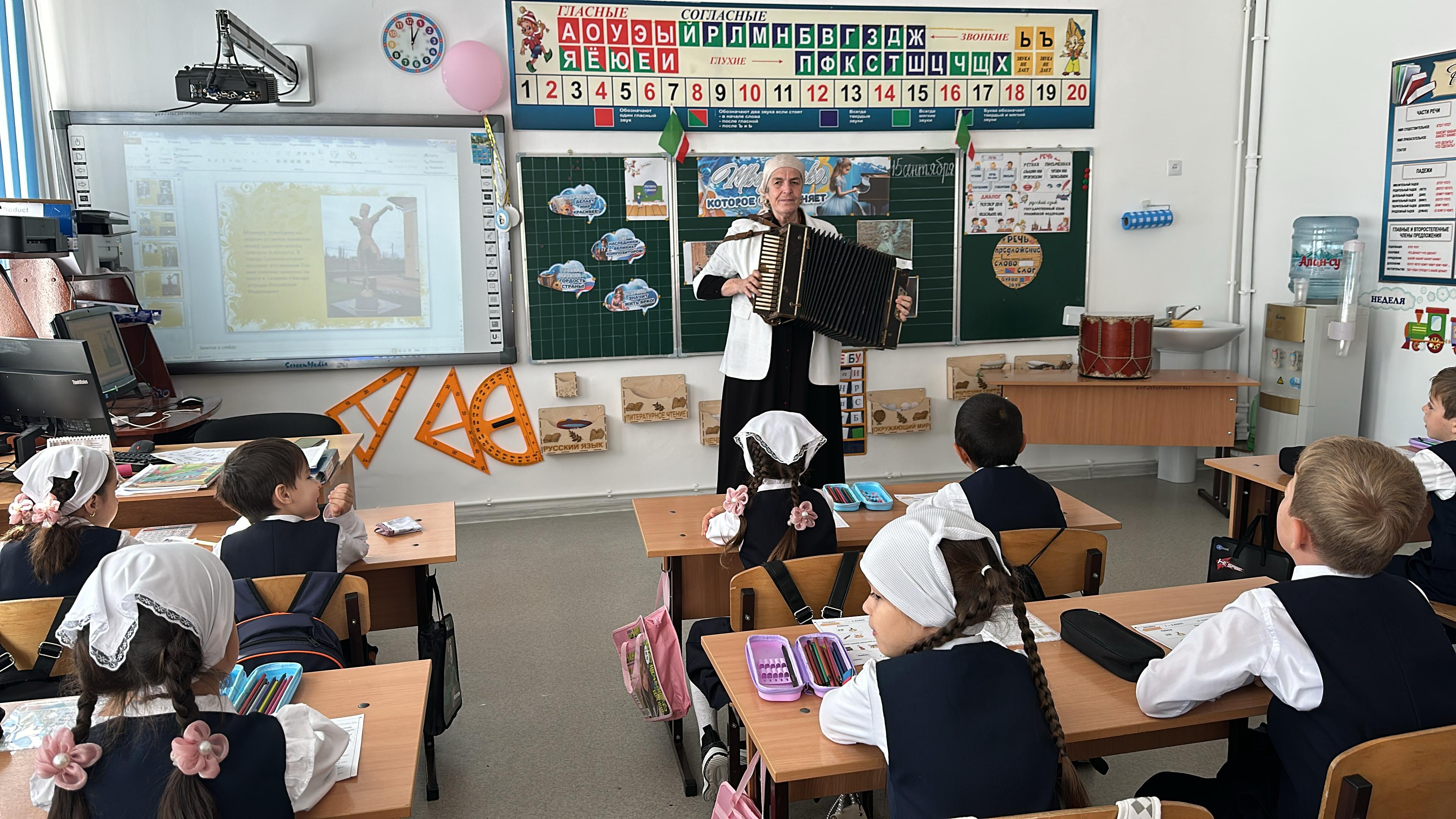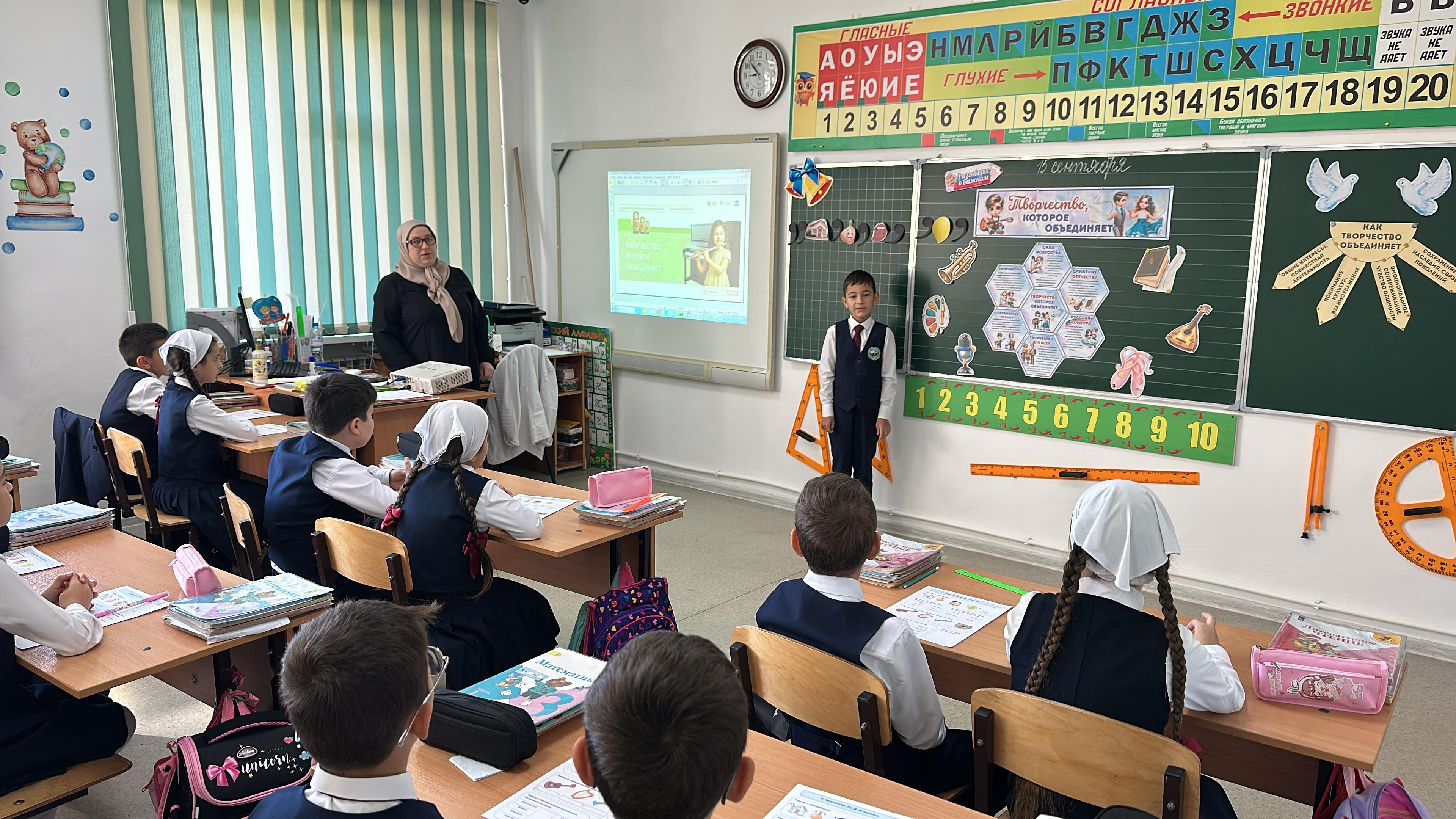 Особенно ярко и познавательно урок прошел в начальных классах. Ребята не только говорили о том, как музыка, живопись и театр сближают людей, но и смогли познакомиться с различными музыкальными инструментами, их звучанием и историей.