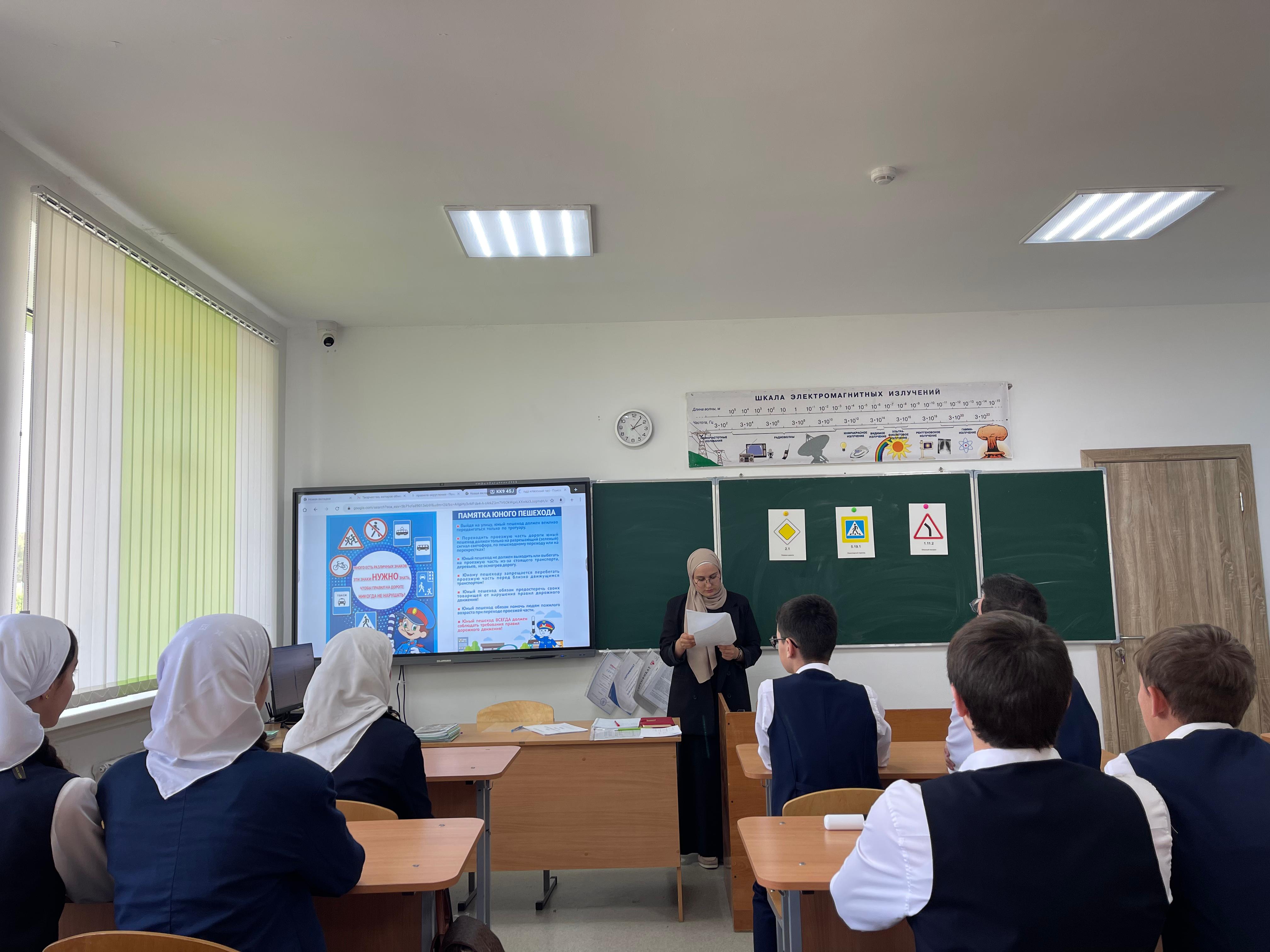 19 сентября 2025 года в 9«В» классе прошел важный и познавательный классный час, посвященный правилам дорожного движения. Под руководством классного руководителя Адузаевой Линды Саламбековны учащиеся не просто повторили теорию, а стали активными участниками беседы.