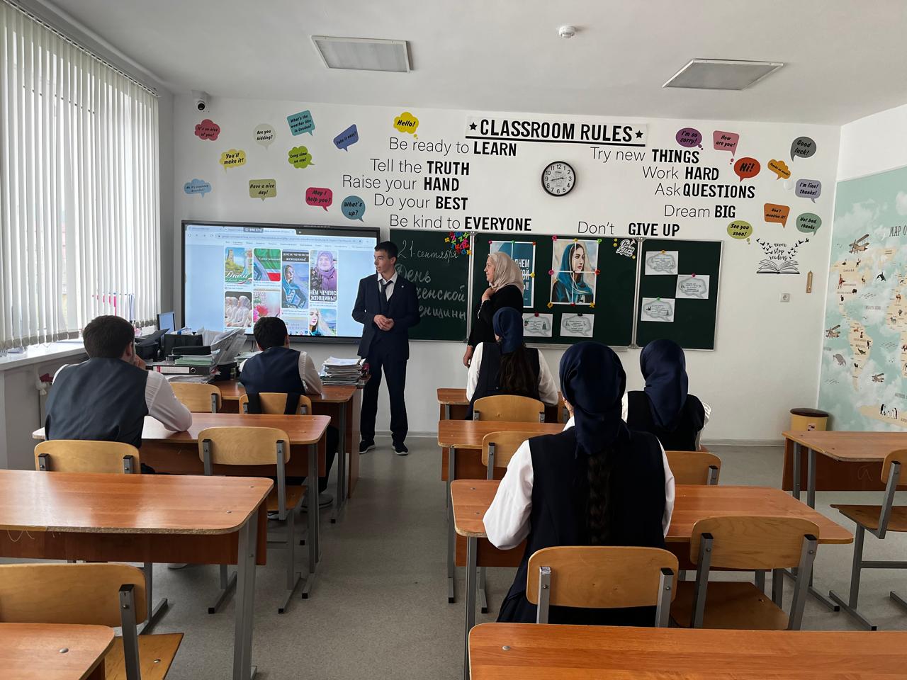 18.09.2025 года в 10 классе проведен классный час, посвященный Дню чеченской женщины. Цели мероприятия: показать роль женщины в жизни чеченсконо общества; познакомить с историческими личностями, ознакомить с родом деятельности чеченских женщин; воспитание чувства патриотизма и гордостиза свой народ и за свою историю. Праздник основан в память о 46 чеченских девушках, погибших во время Кавказской войны. Этот праздник учрежденный Главой Чеченской Республики в 2009 году - это дань уважения чеченским женщинам, которые во все времена на своих плечах выносили тяготы и лишения, связанные с трагическими событиями в истории народа в прошлых столетиях, а также в годы двух военных кампаний. Учащиеся провели активную дискуссию и викторину о том, что историческая традиция чеченского народа определила доя женщины гораздо более значительное место, чем это принято во всем исламском мире.