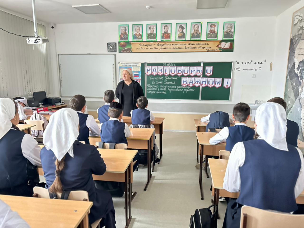 6 октября 2025 года, утро в МБОУ "Веденская СОШ Nº2" началось с торжественной еженедельной линейки. Ученики и педагоги собрались для важной церемонии: под звуки гимнов Российской Федерации и Чеченской Республики были подняты государственные флаги