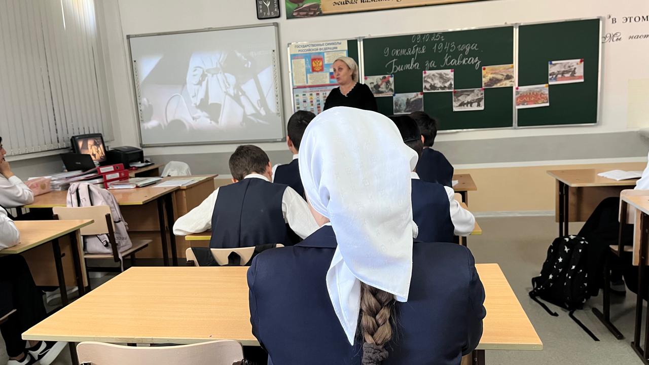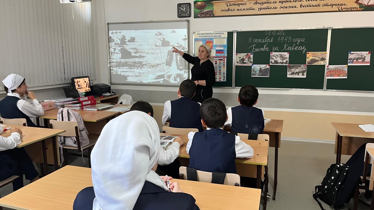 9 октября 2025 года в МБОУ «Веденская СОШ №2» учительница истории Телипова Малика Несирсултановна провела для учащихся 7–8 классов «Уроки мужества».
