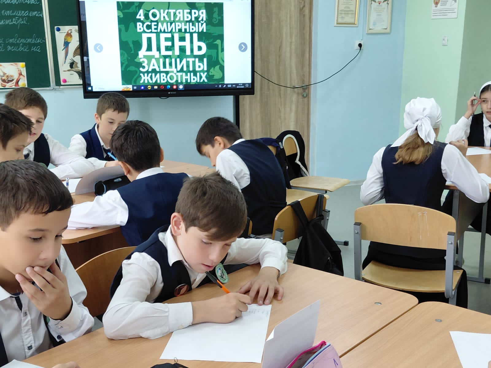 4 октября весь мир отмечает День защиты животных, и наша школа не стала исключением! Учитель биологии Баймурадова Х.Ю.подготовила и провела для ребят из 5 и 6 классов незабываемый квест «В мире животных».