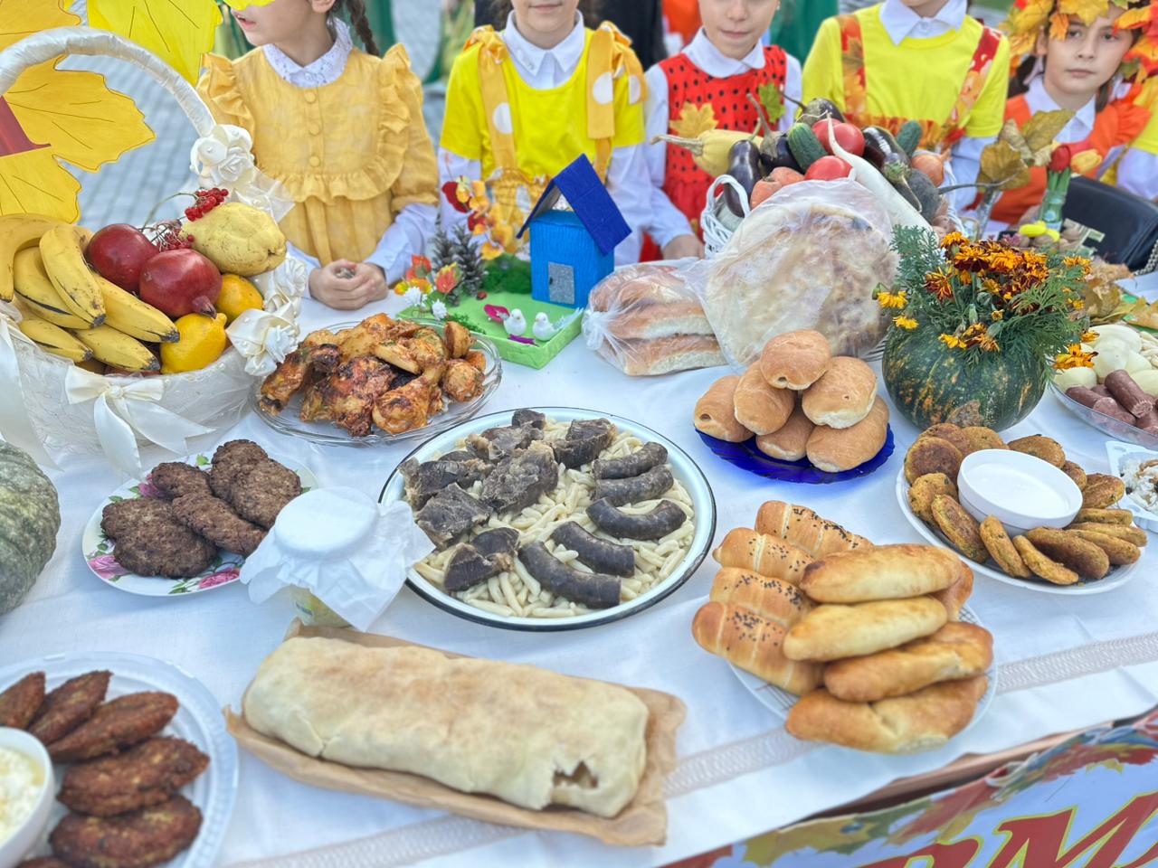 Наша школа представила красочную и щедрую экспозицию. Столы были оформлены дарами осени: свежими овощами и фруктами, вкуснейшей домашней выпечкой и оригинальными природными поделками.