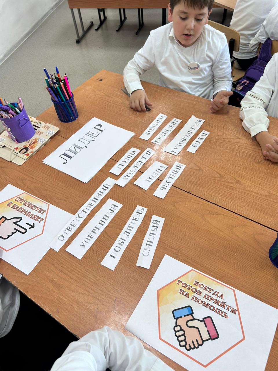 Обучающиеся с большим интересом участвовали в занятии. Собрали ассоциации к слову Лидер, а так же пазл «Лидер». Провели интересную беседу и игру «Найди свое имя».