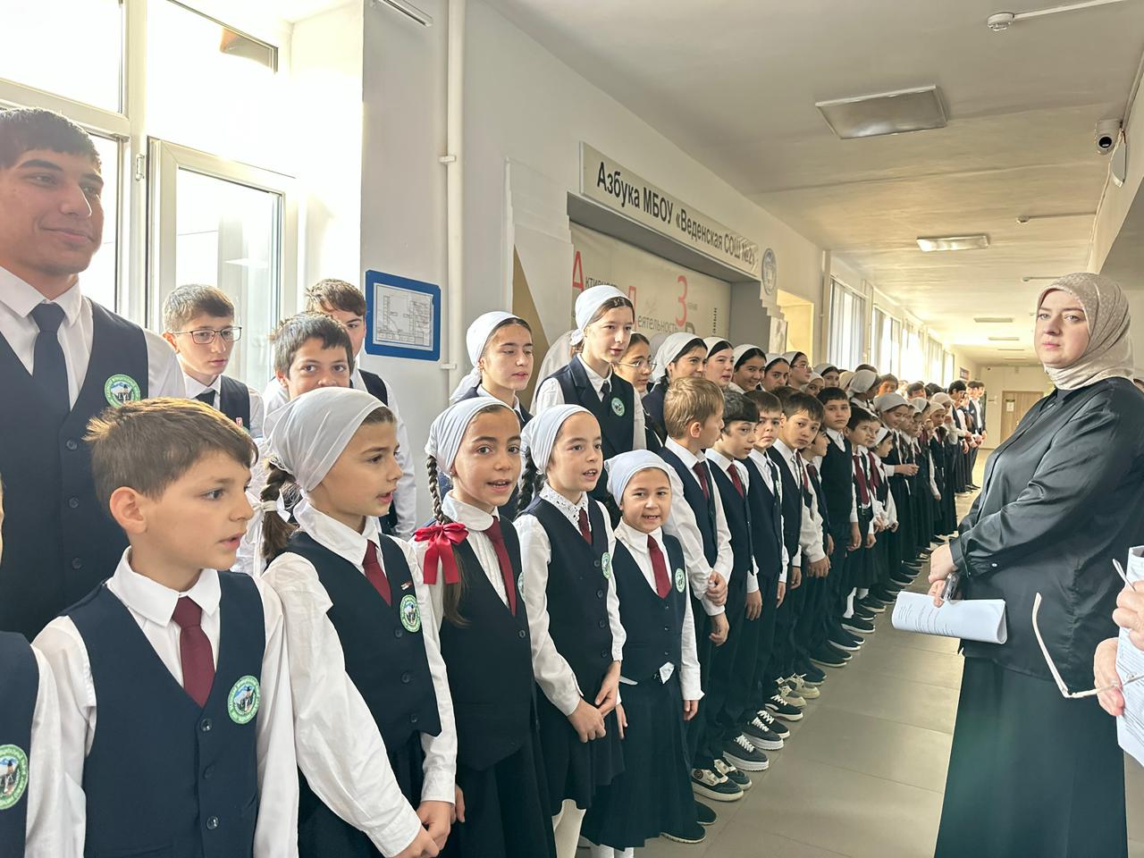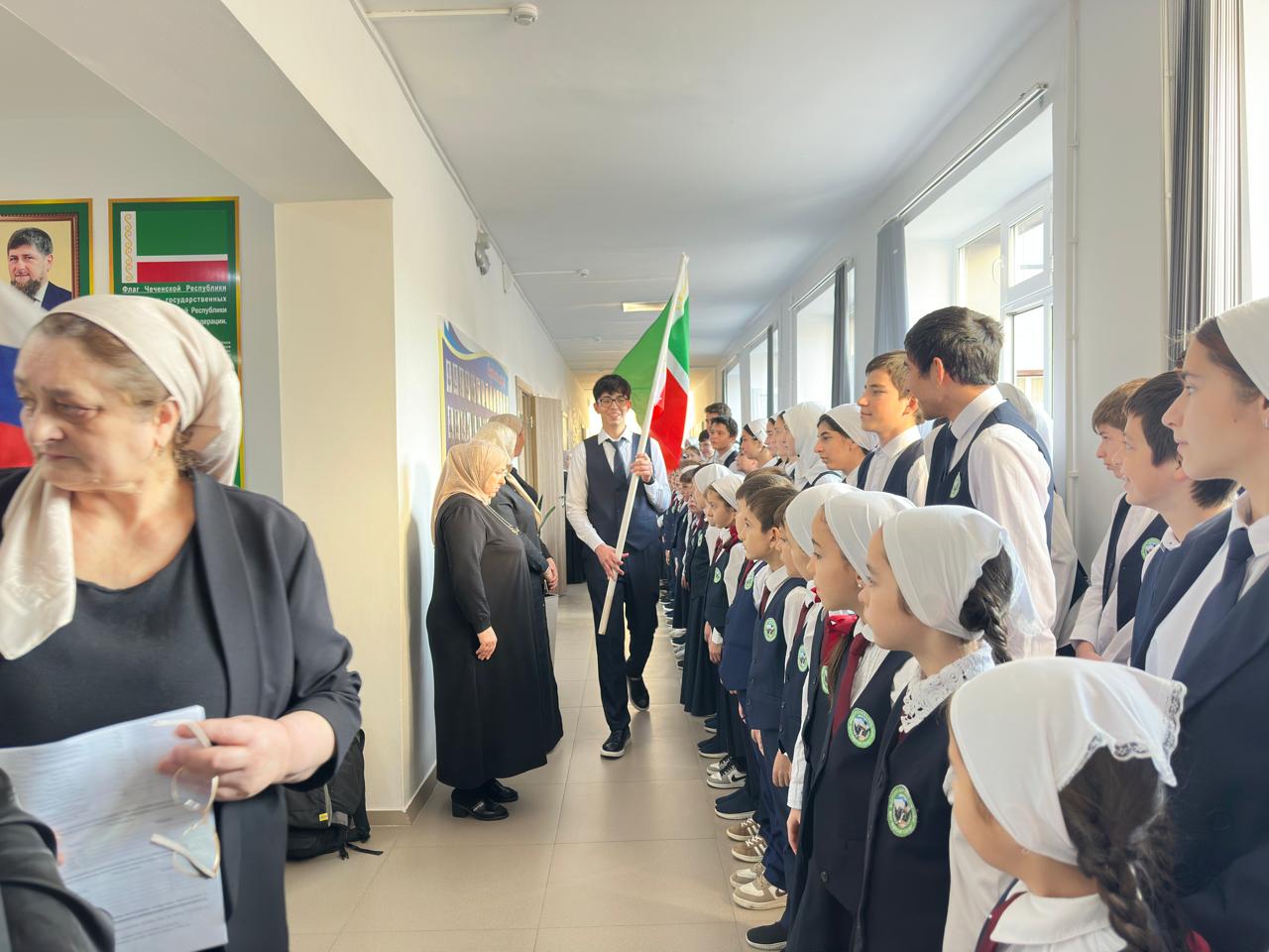 10 ноября 2025 года в МБОУ «Веденская СОШ Nº2» состоялась традиционная еженедельная торжественная линейка. Мероприятие началось с церемонии поднятия государственных флагов Российской Федерации и Чеченской Республики, а также исполнения гимнов РФ и ЧР.