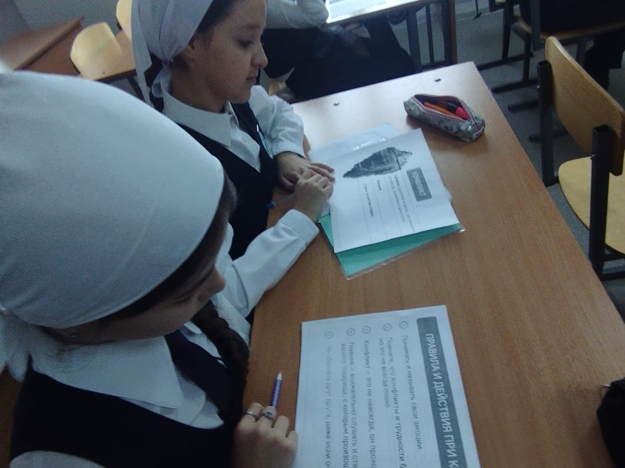 Во время занятий учащиеся познакомились с особенностями профессии психолога, узнали о причинах возникновения конфликтных ситуаций и обсудили возможные пути их разрешения.