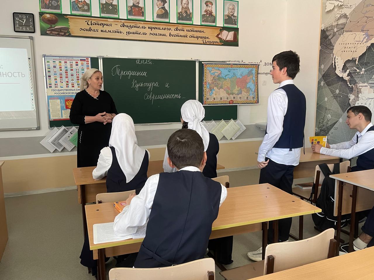 12.11.2025 г., классный руководитель 8 «Б» класса Телипова М.Н, провела классный час на тему: «Традиции, культура и современность».
