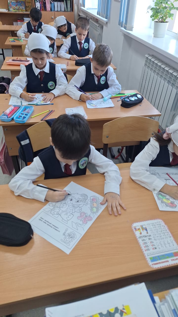Мероприятие прошло в живой и увлекательной форме. Первоклассники с большим интересом отвечали на вопросы о правилах поведения на дороге, сигналах светофора и дорожных знаках. Для закрепления материала Исама Супьяновна организовала для ребят дополнительную работу: дети с удовольствием раскрашивали тематические рисунки по ПДД. Ярким и запоминающимся моментом мероприятия стало задорное исполнение песни «Колесики».