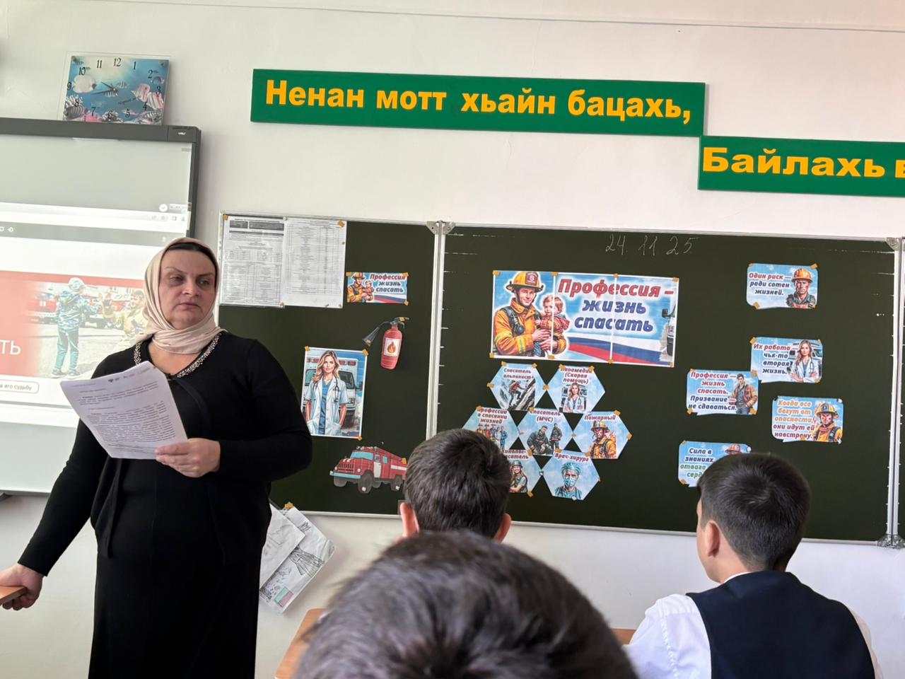 24 ноября 2025 года в МБОУ «Веденская СОШ №2» состоялись очередные уроки из цикла «Разговоры о важном», посвящённые героическим профессиям спасателей. Занятия были направлены на то, чтобы показать школьникам масштаб и значимость работы российских служб спасения. Ребята познакомились с историей и символикой МЧС России — Белой Звездой Надежды и Спасения.