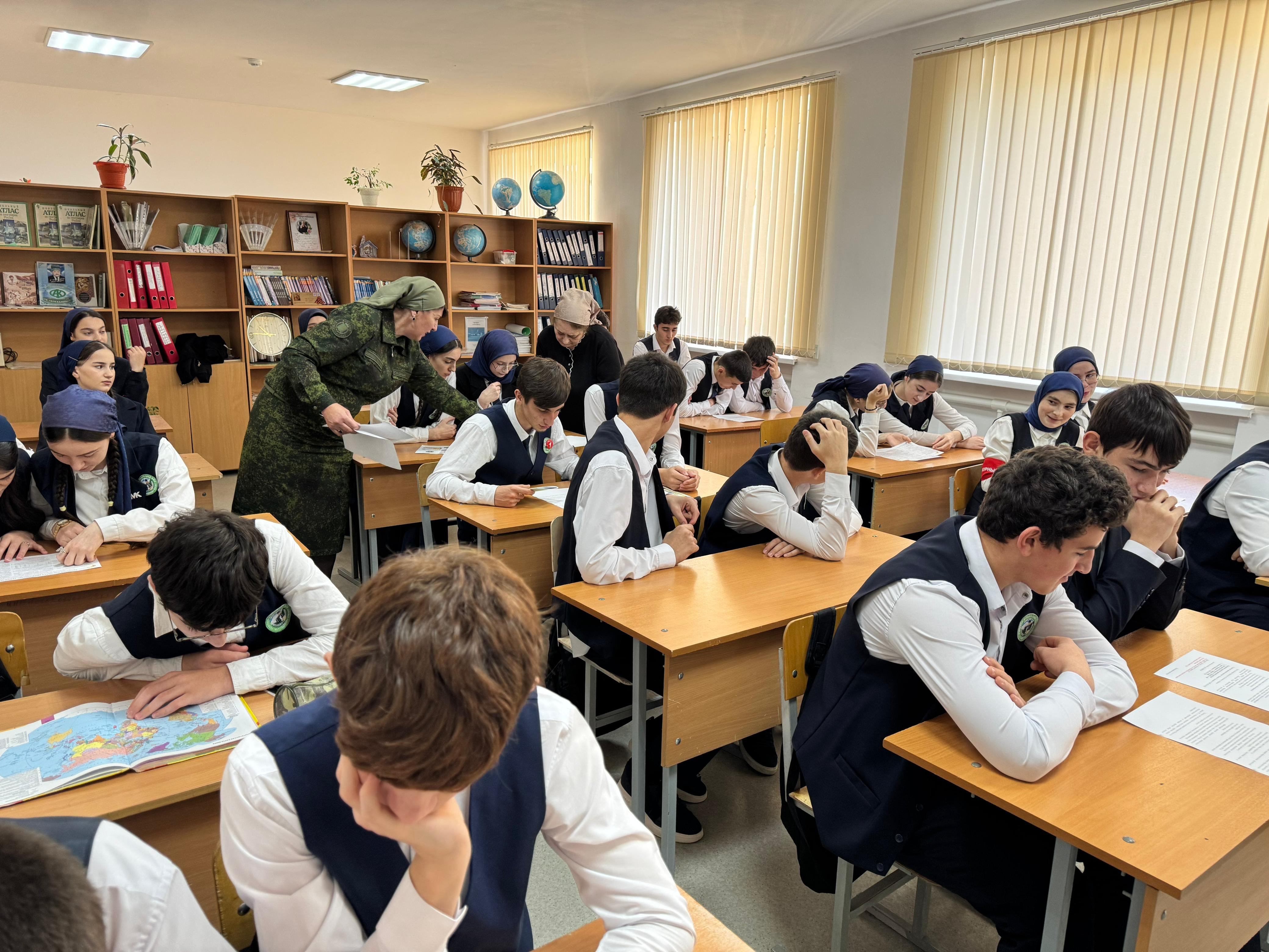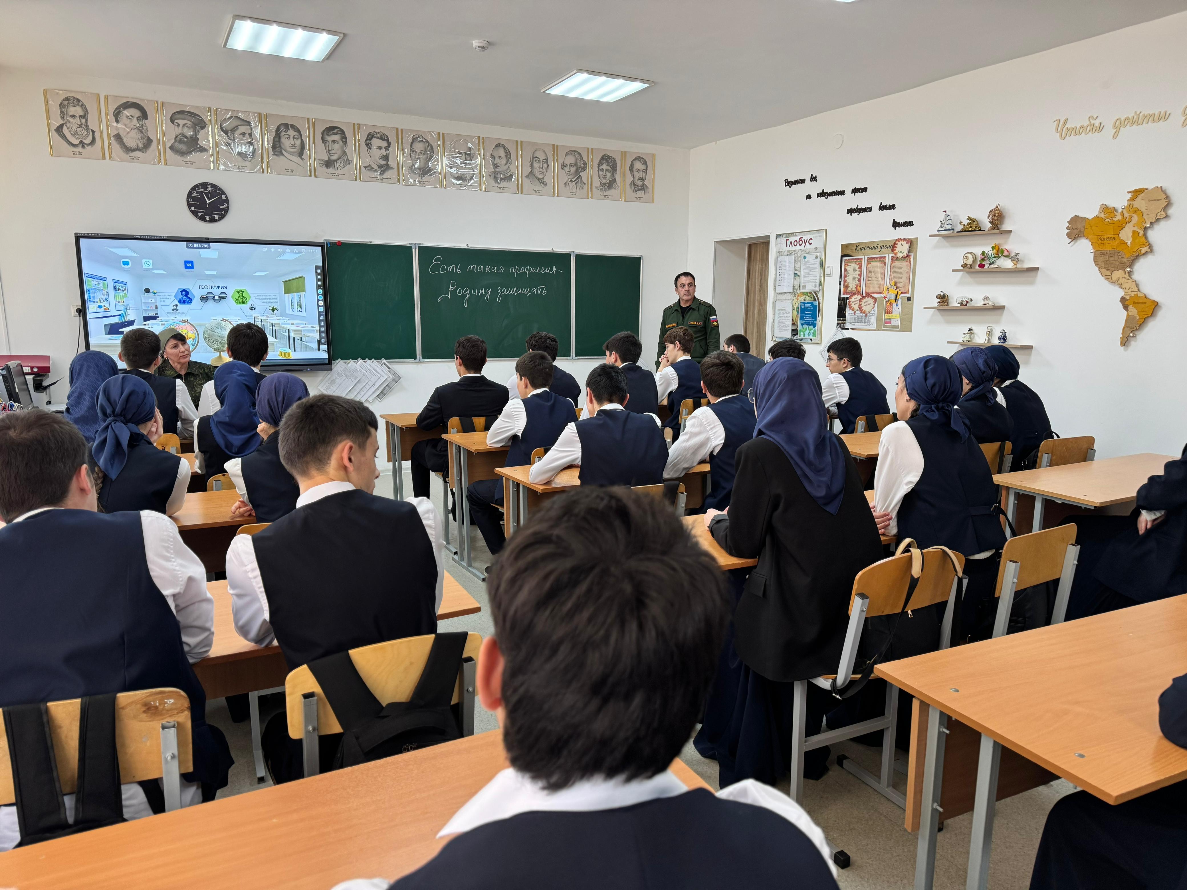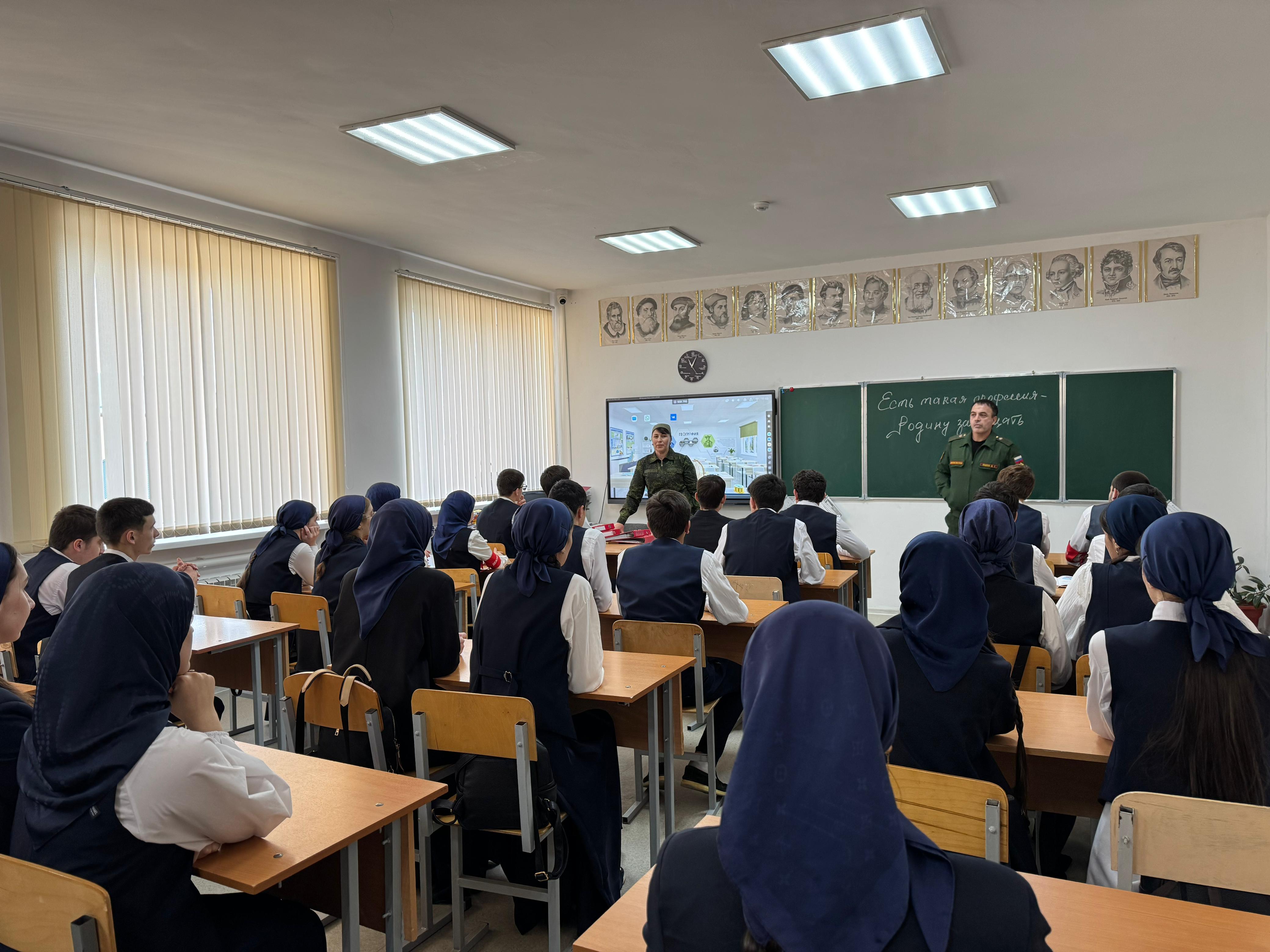 Перед ребятами выступили старший помощник военного комиссара по призыву Сидиева Таиса Абдул-Вахидовна и помощник военного комиссара по воинскому учёту Пашаев Шайхмагомед Сайдиевич.