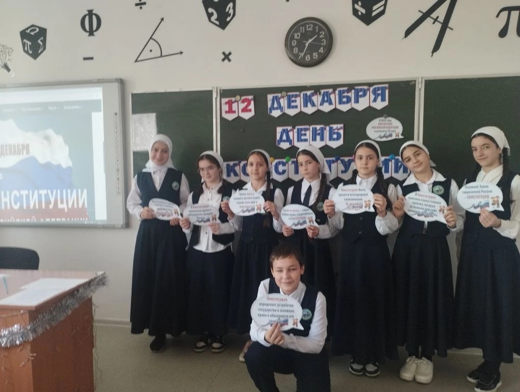 12.12.2025г. классный руководитель Халилаева Э.Ш. в 6 "А" классе провела классный час на тему:"Дня Конституции Российской Федерации", отмечаемого ежегодно 12 декабря, позволяет школьникам познакомиться с основами российского права, историей принятия Основного закона страны и значением Конституции для каждого гражданина.