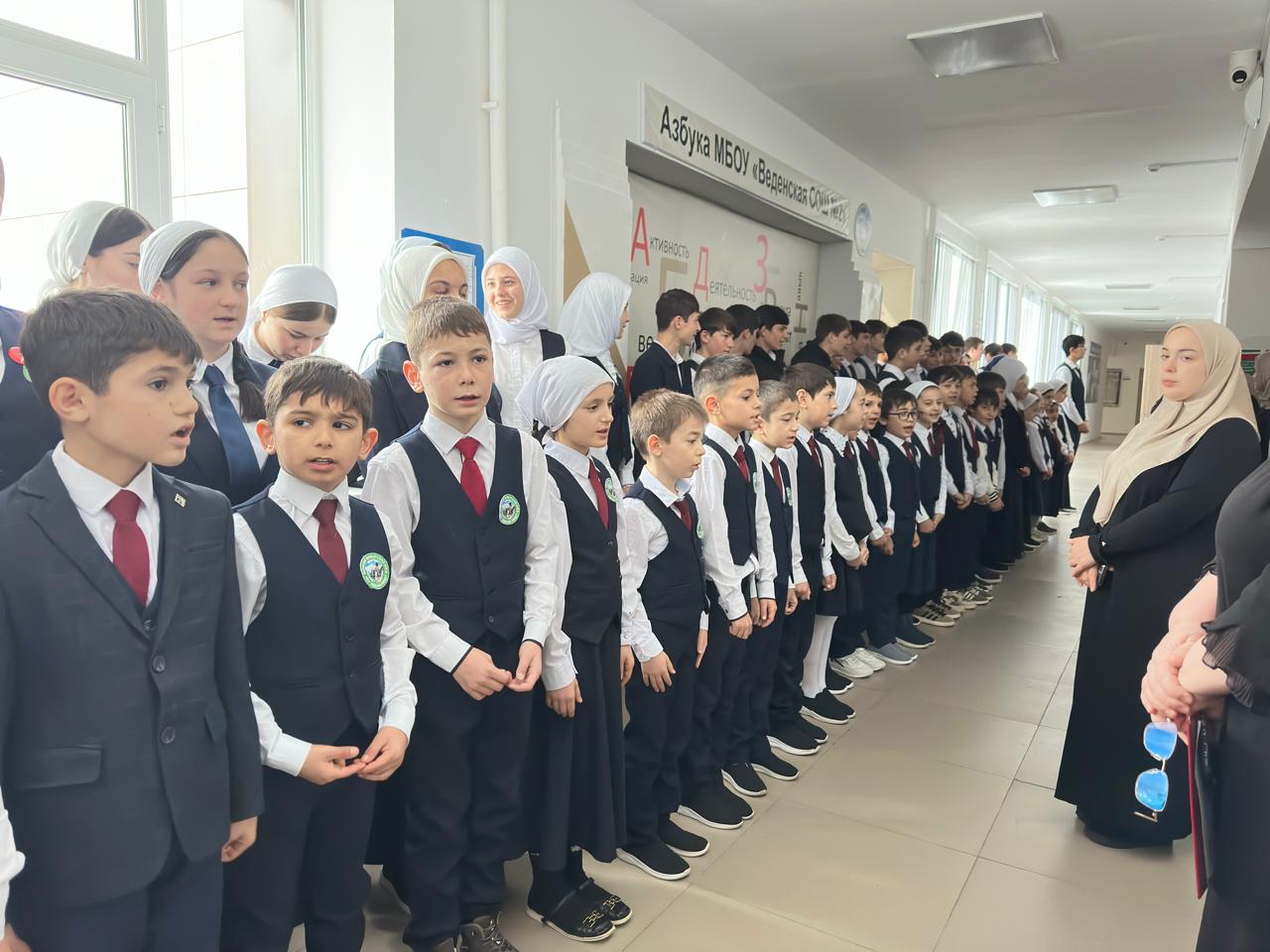 19 января 2026 года в МБОУ "Веденская СОШ №2" проведена еженедельная торжественная линейка, посвященная поднятию государственных флагов Российской Федерации и Чеченской Республики, а также исполнению гимнов.