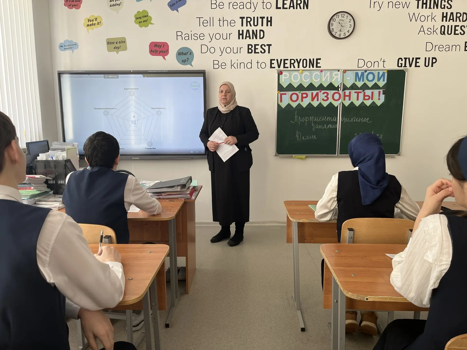 22 января 2026 года в МБОУ «Веденская СОШ №2» состоялось очередное занятие курса «Россия - мои горизонты» по теме «Мои ориентиры», «Моё будущее» для учеников 6-11 классов.