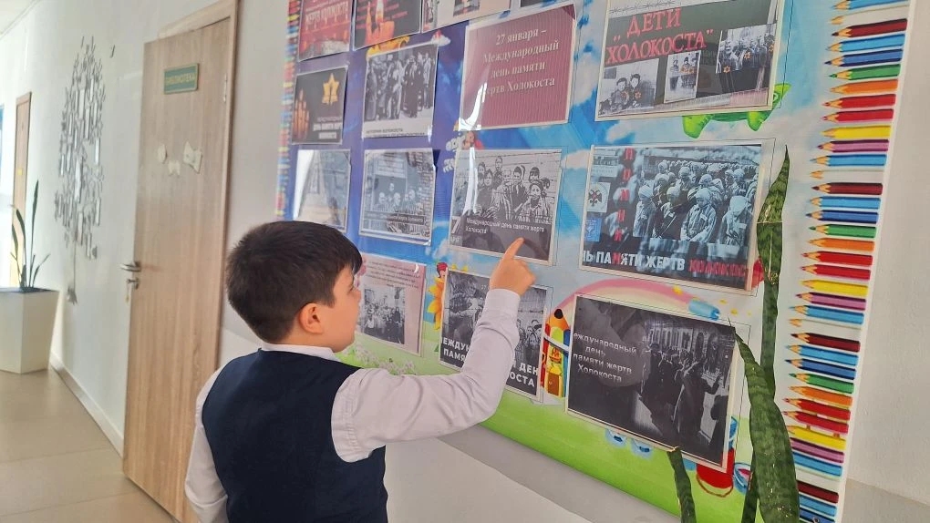 Стенд содержал исторические справки, фотодокументы и цитаты, раскрывающие трагедию Холокоста. Его главная цель – наглядно напомнить подрастающему поколению об одной из самых страшных страниц истории человечества, о боли и миллионах невинных жертв.