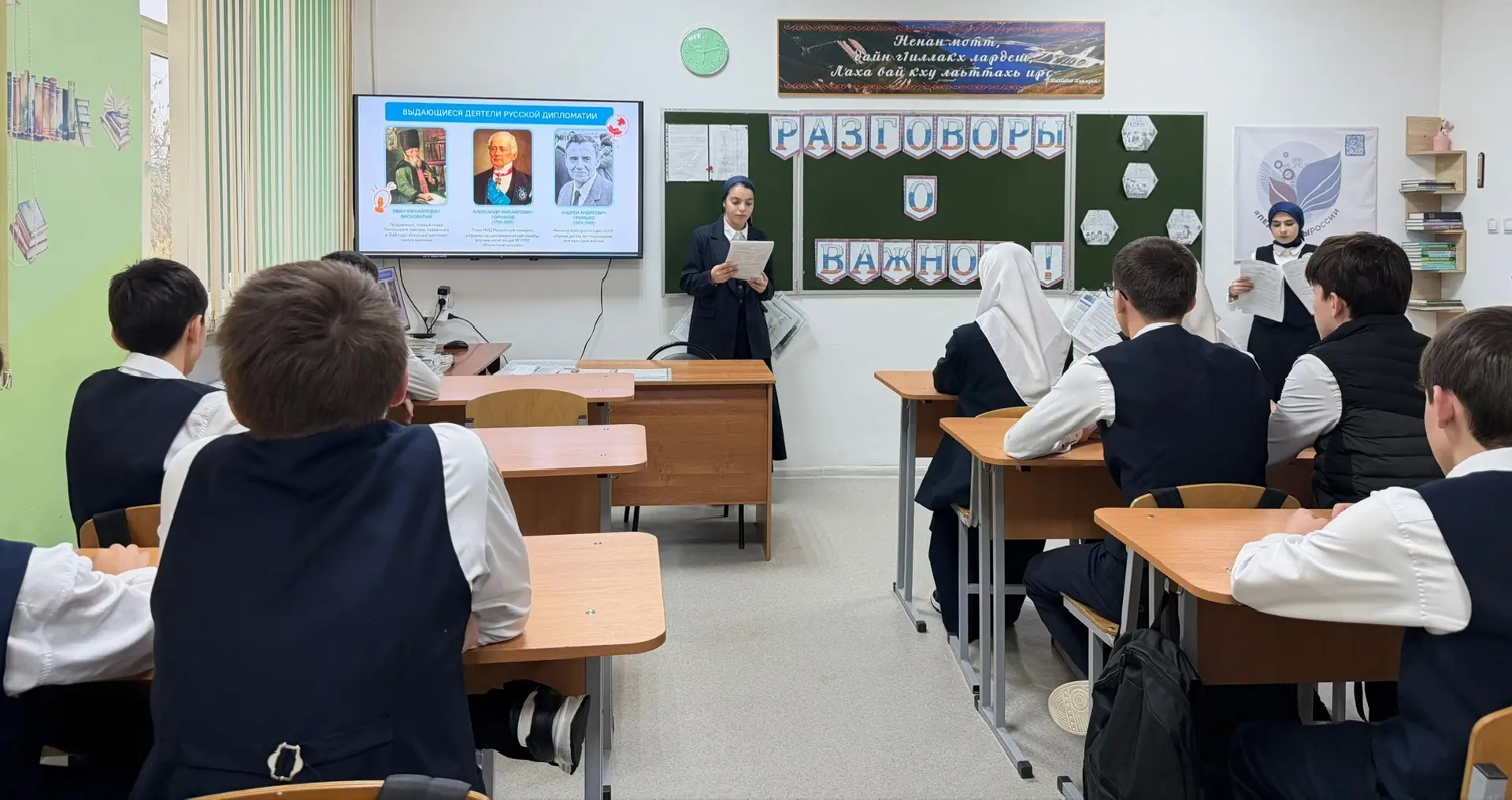 Очередная учебная неделя и очередное занятие «Разговоры о важном». 09.02.2026 года, в стенах школы МБОУ «Веденская СОШ №2», всеми полюбившееся занятие РОВ в 9А классе, был проведен с учащимися ППП-класса. Спикерами занятия были - Загаева Рамнат и Гагаева Мата. Ученицы смогли доступно и внятно объяснить девятиклассникам что такое дипломатия, позиции дипломатов и как сама дипломатия влияет на жизнь. Учащиеся 9-го класса с интересом слушали и отвечали на вопросы связанные с темой.
