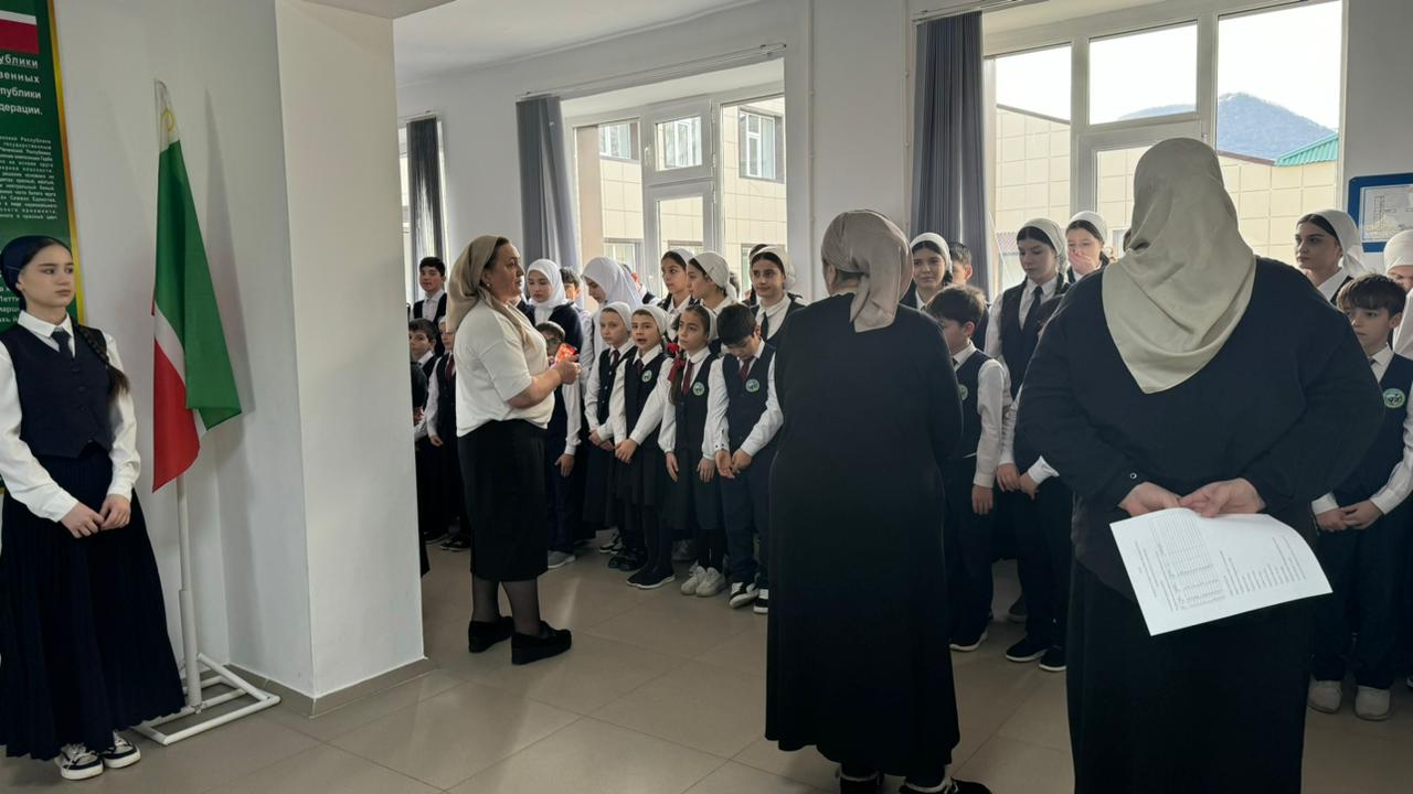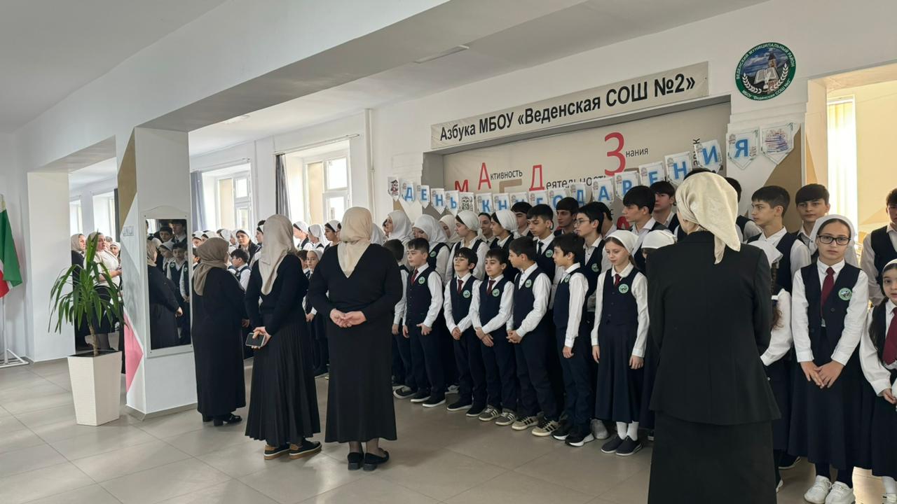 16 февраля 2026 года в МБОУ «Веденская СОШ №2» состоялась традиционная еженедельная линейка. Мероприятие началось с торжественной церемонии поднятия государственных флагов и исполнения гимнов Российской Федерации и Чеченской Республики.