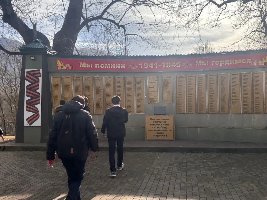Но экскурсия не ограничилась только любованием природой. Ребята посетили памятник павшим солдатам Великой Отечественной войны, который венчает братскую могилу. Особое впечатление на всех произвела «Стена скорби» под названием «Материнские слезы».