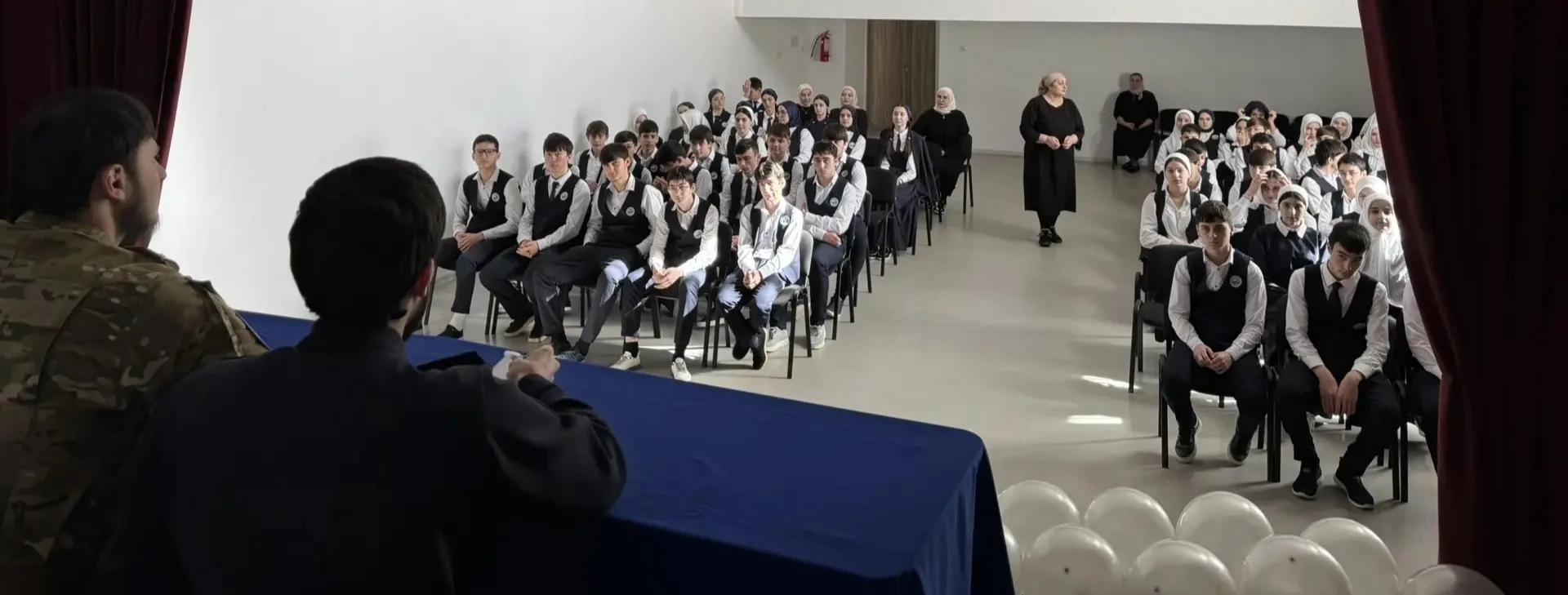 Формат живого диалога позволил ребятам не просто послушать, но и стать активными участниками беседы. Они внимательно слушали рассказ Амира о нелегкой службе, о боевых буднях и товарищах. Школьники задавали множество вопросов, их интересовало всё: от быта на передовой до личных качеств, необходимых защитнику.