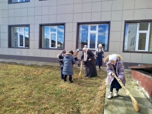 Вооружившись необходимым инвентарем, ребята и Яха Тасовна дружно вышли на закрепленный за классом участок. Школьники собирали мусор, подметали дорожки и сгребали опавшую листву. Работа кипела весело и слаженно.