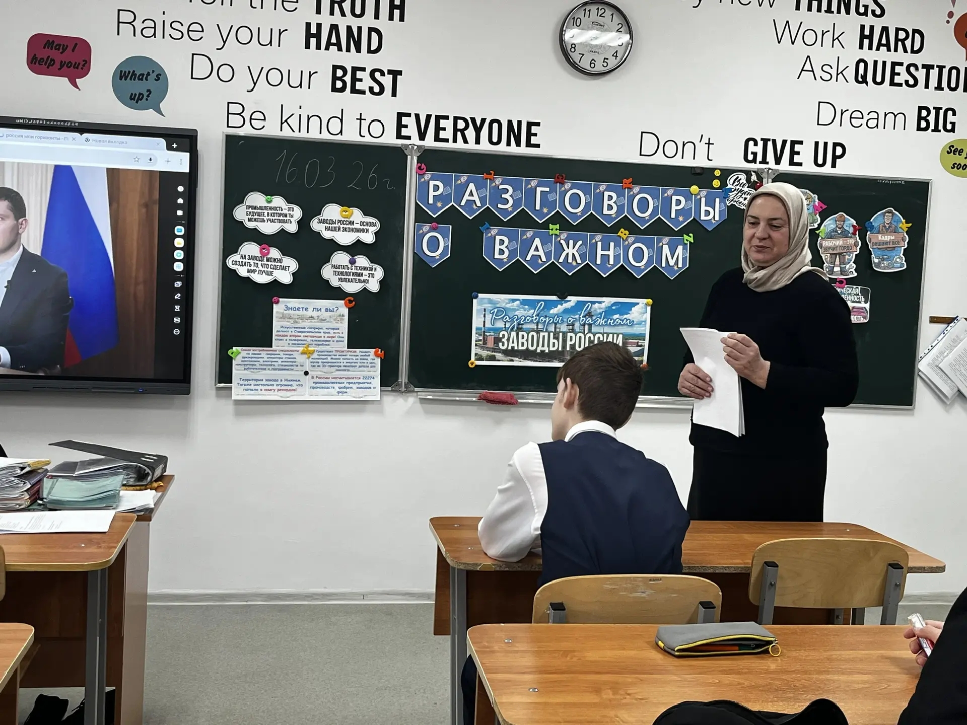 16 марта 2026 года в МБОУ «Веденская СОШ №2» состоялись внеурочные занятия "Разговоры о важном" на тему «Заводы России». Педагоги рассказали учащимся о важности современной промышленности нашей страны, подчеркнув её ключевую роль в развитии экономики и обеспечении благосостояния граждан.