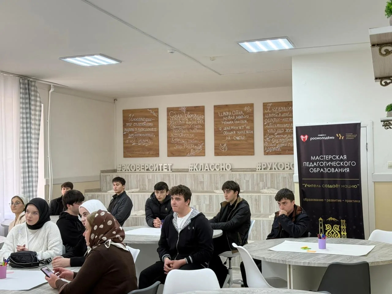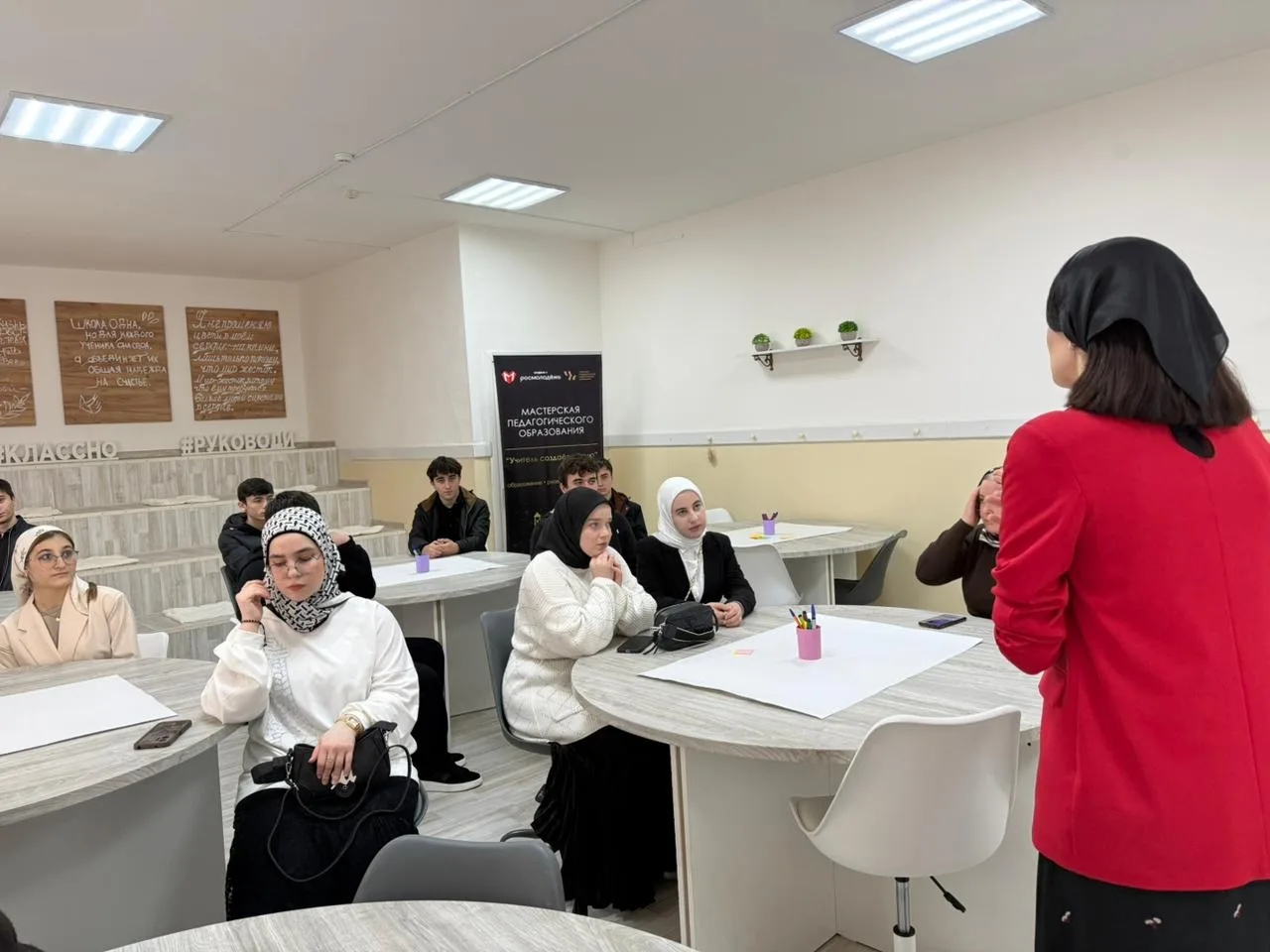 В университете гостей радушно и приветливо встретили преподаватели и студенты-волонтёры. Особую радость вызвала встреча с нашей прошлогодней выпускницей, а ныне студенткой ЧГПУ Газдиевой Эльмирой, которая сопровождала нас в роли волонтёра — это было вдвойне приятнее.