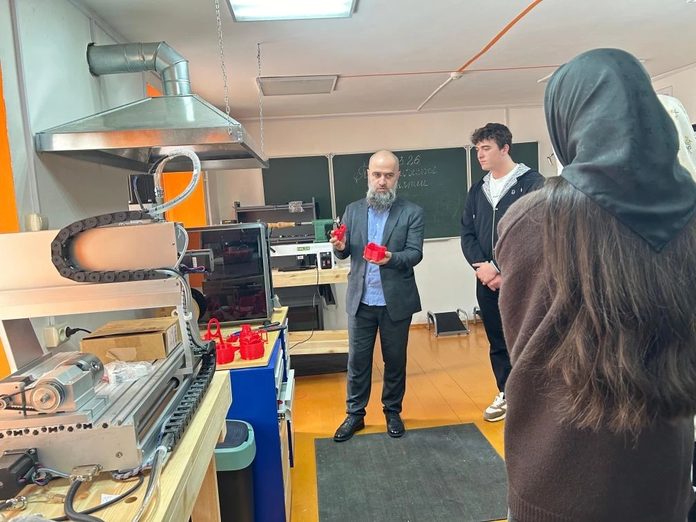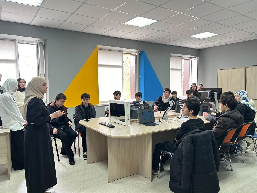 11 апреля 2026 года учащиеся 11 класса вместе с классным руководителем Магомедовой Р.Л. в рамках реализации профориентационного проекта «Билет в будущее» посетили День открытых дверей в Чеченском государственном педагогическом университете (ЧГПУ).