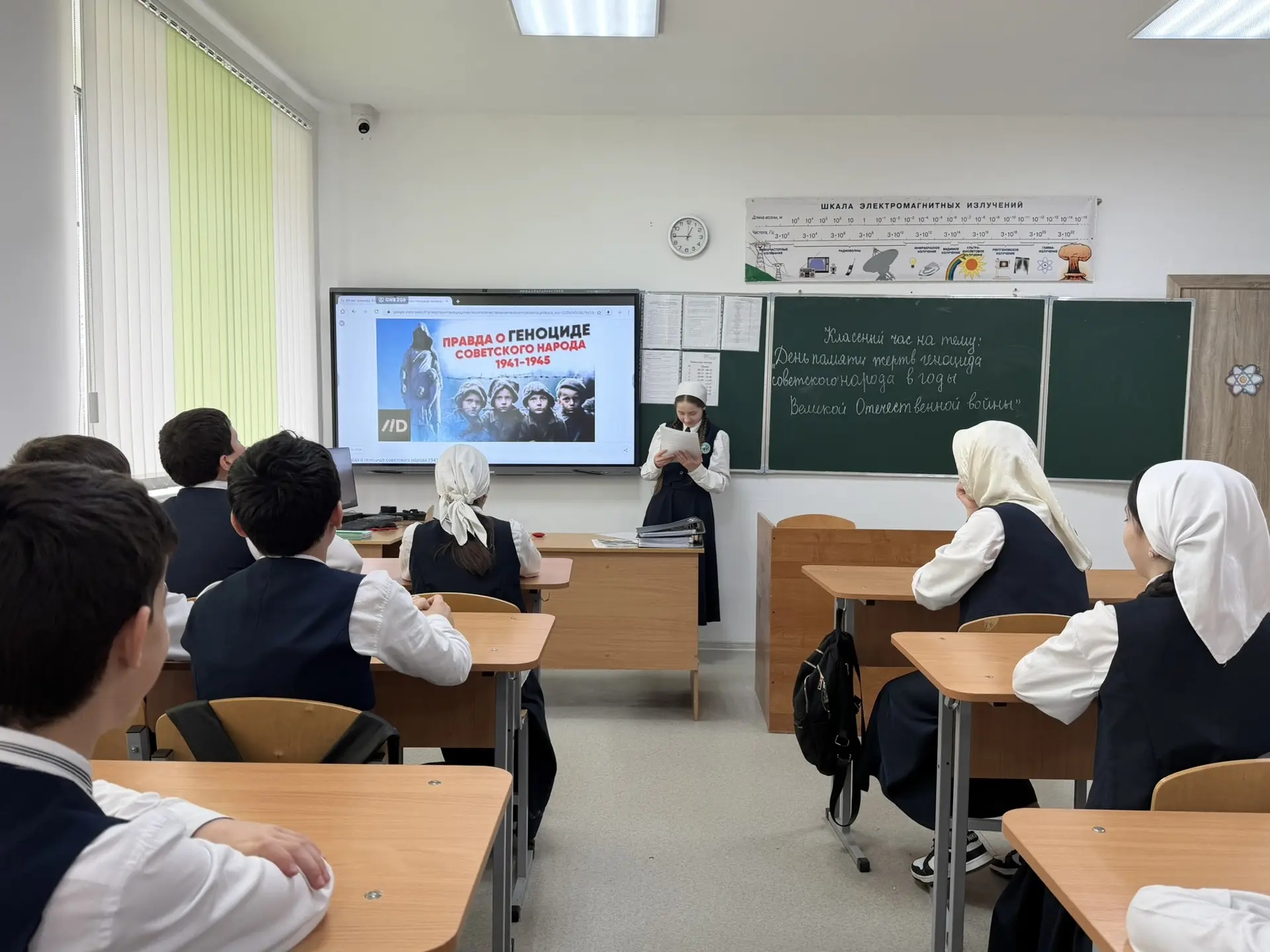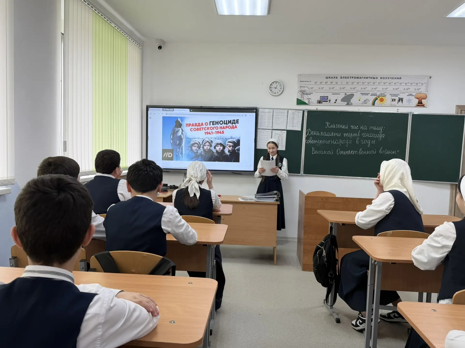 13 апреля 2026 года в 6 Б классе прошел классный час, посвященный дню памяти о геноциде советского народа нацистами и их пособниками в годы Великой Отечественной войны. Целью данного урока было сохранение исторической правды о преступлениях нацистов и их пособников в отношении мирных советских граждан в годы Великой Отечественной войны на оккупированной территории. Организатором данного мероприятия выступила классный руководитель Байсуркаева Л.А. На уроке учащимся рассказала о Великой Отечественной войне и о причинах возникновения таких понятий, как "геноцид" и "фашизм". Ребята посмотрели отрывки из фильма "Группа крови"-это российская военная драма, основанная на реальных событиях Великой Отечественной войны. Картина рассказывает о детском концентрационном лагере, организованном нацистами на оккупированной территории Советского Союза. В конце мероприятий учащимися были сделаны выводы. Отвечая на вопрос, почему мы должны знать эти ужасные факты нашей истории, они отвечали: «Чтобы больше такого никогда не повторилось." Уроки мужества еще раз напомнили, какой ценой досталась нам Победа в Великой Отечественной войне и что мы должны помнить об этом не только в памятные дни, но и всегда. Мероприятия, посвященные историческим событиям, помогают учащимся больше узнать о героическом прошлом страны, воспитывают любовь к Родине, гордость за свой народ.