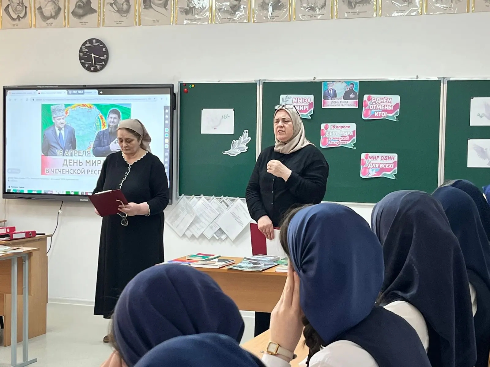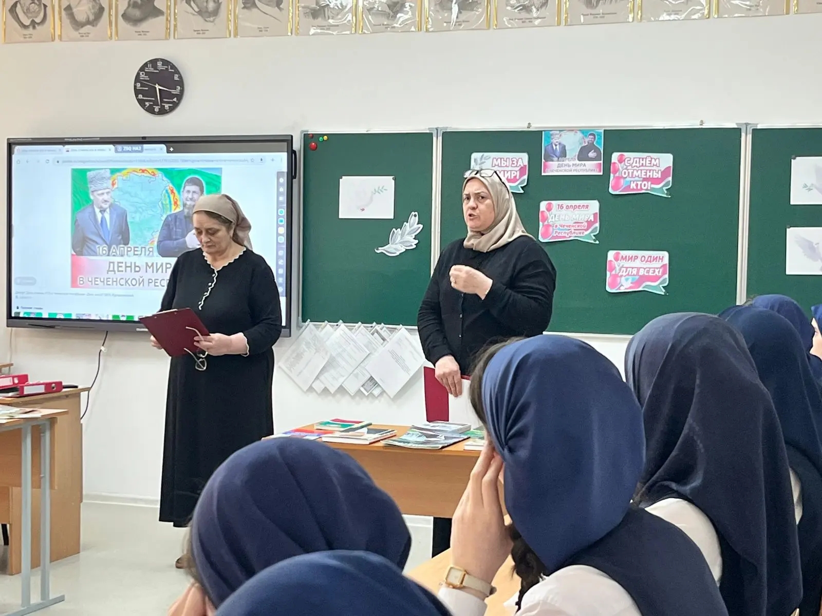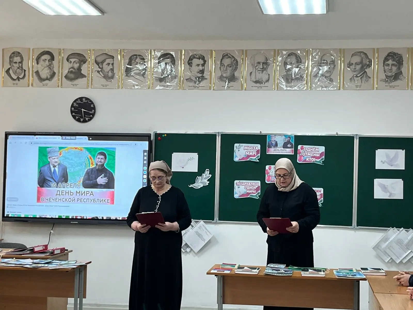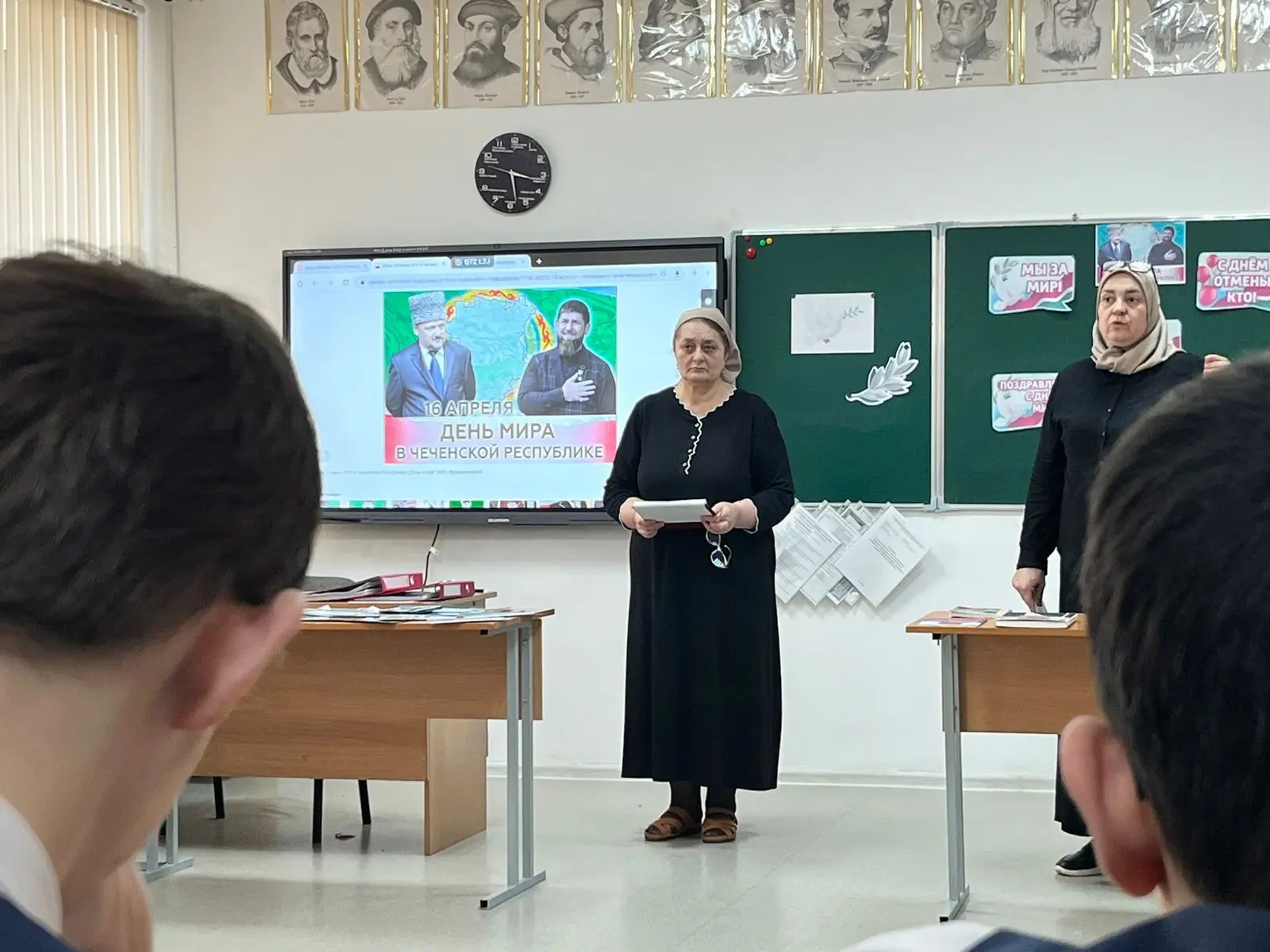 Има Арбиевна Инасаламова, обращаясь к старшеклассникам, подробно остановилась на роли руководства республики в установлении мира. Была особо отмечена заслуга Главы Чеченской Республики, Героя России Рамзана Ахматовича Кадырова, который является достойным продолжателем дела своего отца — Первого Президента Чеченской Республики, Героя России Ахмата-Хаджи Кадырова. Педагоги подчеркнули, что благодаря мудрой политике и неустанным усилиям Рамзана Ахматовича, направленным на развитие региона, поддержание правопорядка и диалог с обществом, Чеченская Республика превратилась в один из самых стабильных и динамично развивающихся субъектов Российской Федерации.