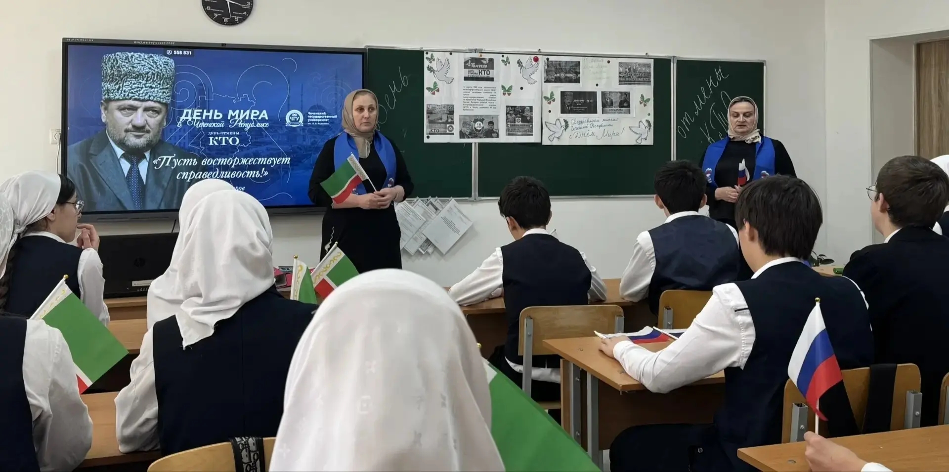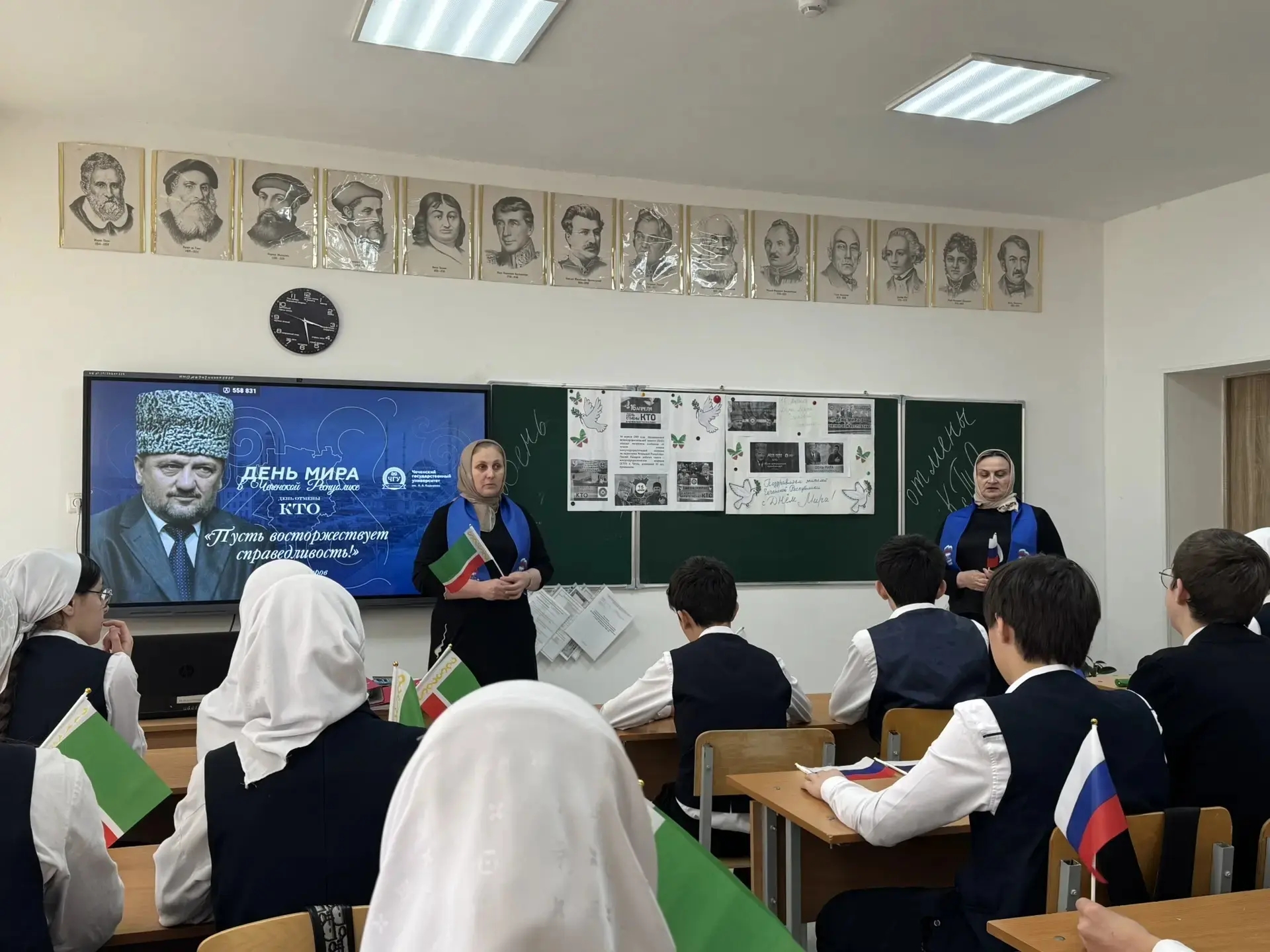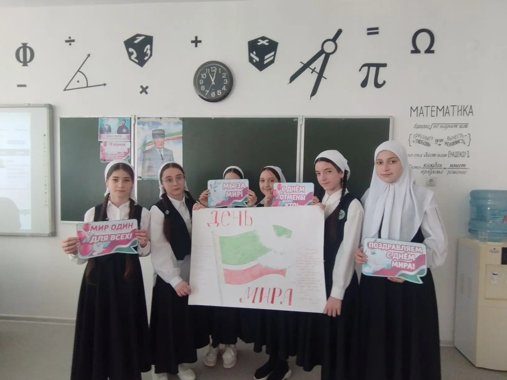 В рамках мероприятий учащиеся изготовили рисунки и плакаты ко Дню мира на земле Чеченской Республики. Учителя рассказали школьникам о значении этой даты для народа ЧР. Учитель истории и обществознания Телипова Малика Несирсултановна подчеркнула, что о мире мечтал и отдал за него свою жизнь Первый Президент Чеченской Республики, Герой России Ахмат-Хаджи Кадыров (Дала гӀазот къобалдойла). Также была отмечена роль Главы республики Рамзана Ахматовича Кадырова в восстановлении региона. Учащиеся познакомились с историческими материалами, читали информацию, просмотрели видеоролики и документальные фильмы.