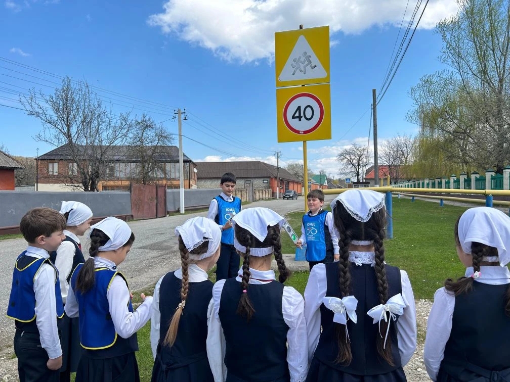 После закрепления теории участники перешли к практической работе на улице. Вместе с Мадиной Исмаиловной и ЮИДовцами третьеклассники: