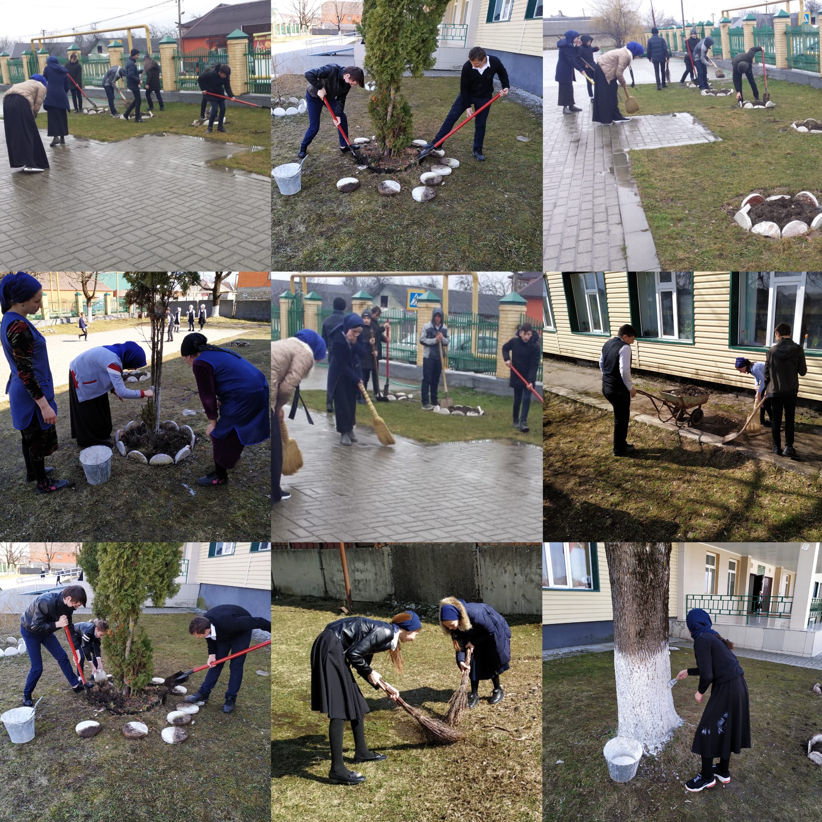 В нашей школе стало хорошей традицией проводить весенние субботники. На наш взгляд, убираться у себя в школе - это святое. В этом году в нашей школе в марте месяце прошли субботники по уборке прилегающей территории.